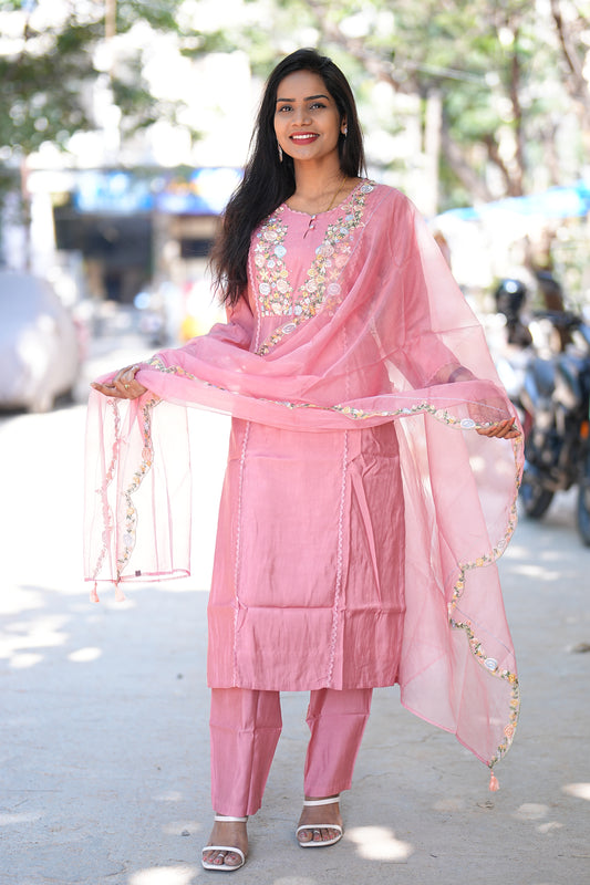 Peach color Viscose Fabric Party Wear 3 Piece Set