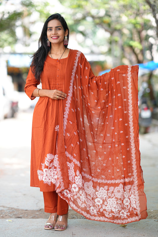 Rust Orange Jaipur Cotton A Line 3 Piece Set