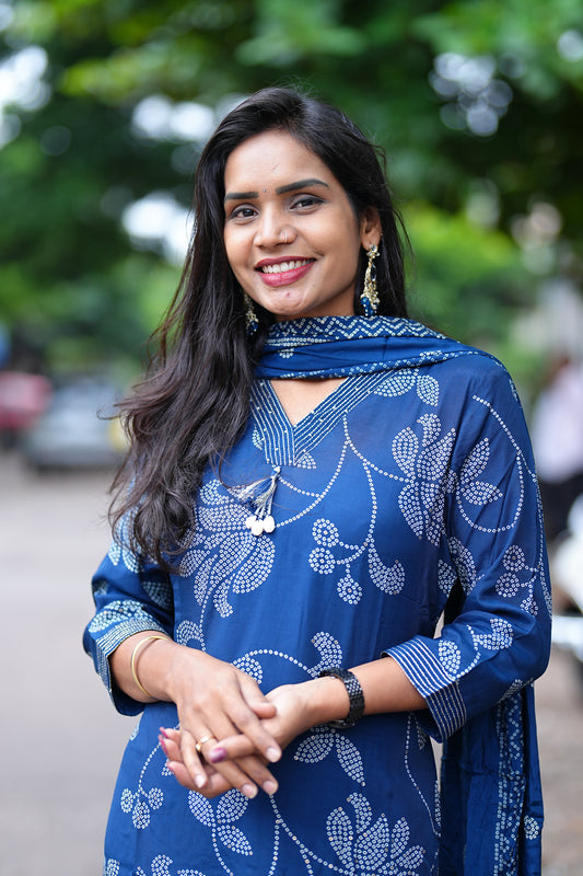 Blue Color Office Wear Jaipur Cotton 3 Piece Set With Complete Lining