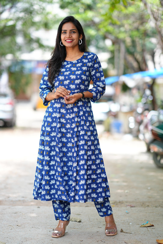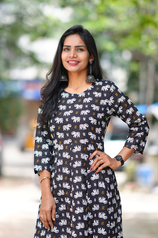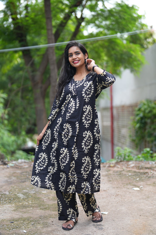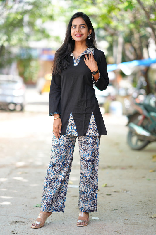 Black Color Kali Pattern Kalamkari Print Cord Set