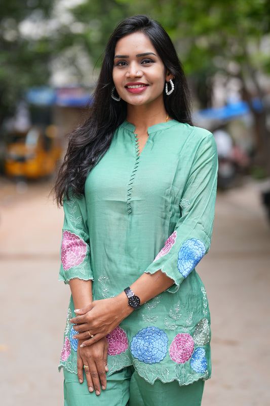 Light Blue Color Designer Wear Mul Chanderi Cord Set