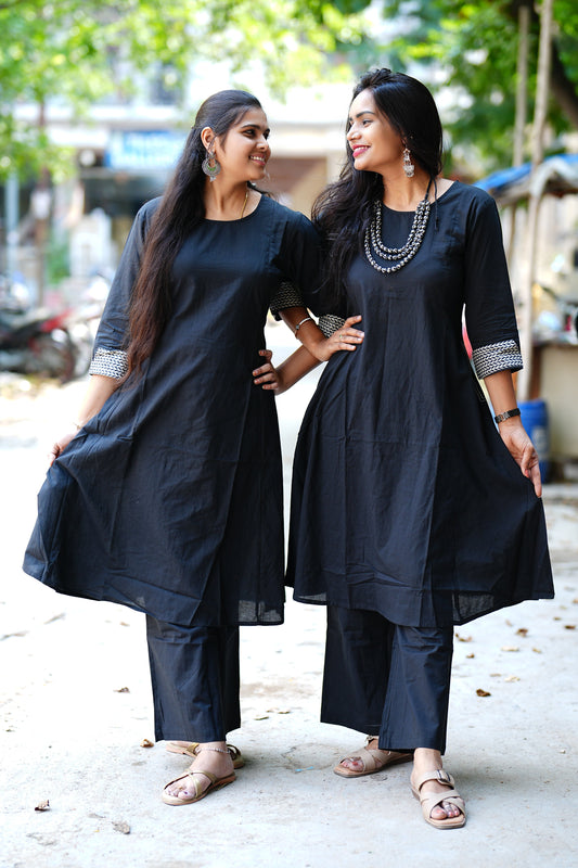 Black Color Cotton Cord Set With Designer Thread Work