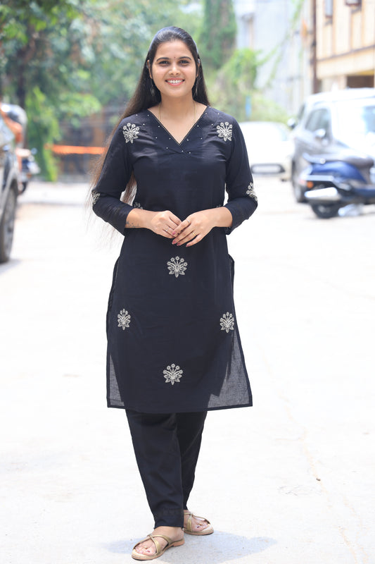 Beautiful Jaipur Cotton Thread Embroidery Black Color Cord set