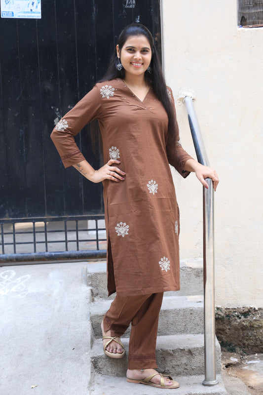 Chocolate Brown Pure Jaipur Cotton Thread Embroidery Cord Set