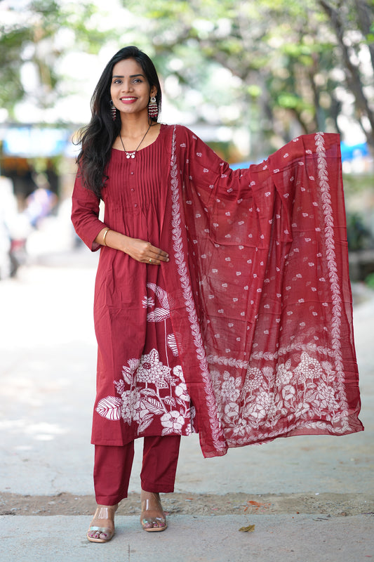 Dark Maroon Color Jaipur Cotton A Line 3 Piece Set