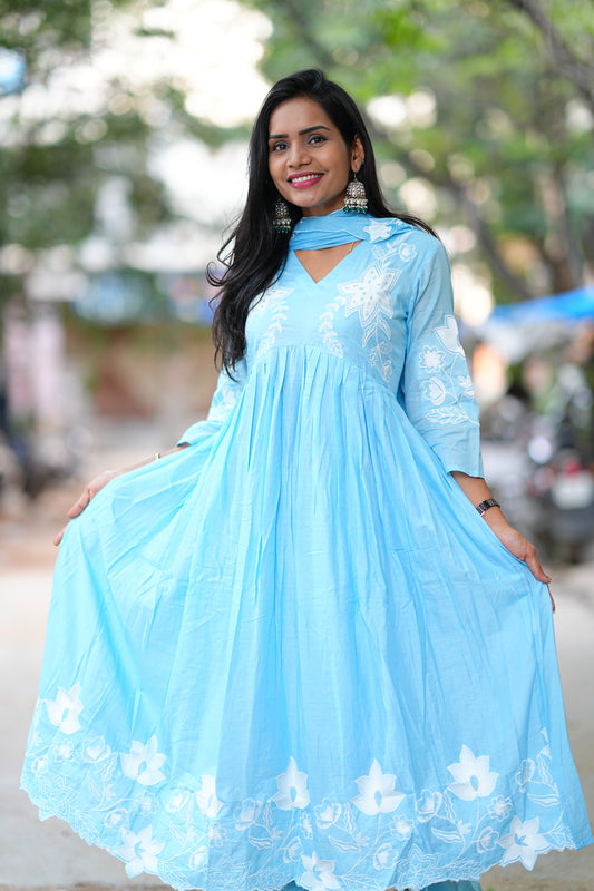 Blue Colour Mul Cotton anarkali 3 Piece Set With Complete Lining