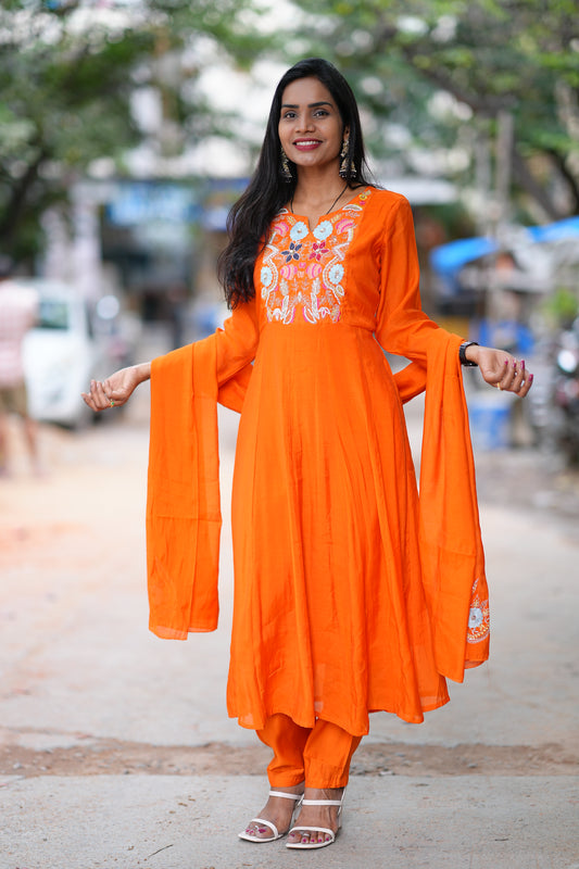 Orange Color Mul Chanderi 3 Piece Set With Lining Lining