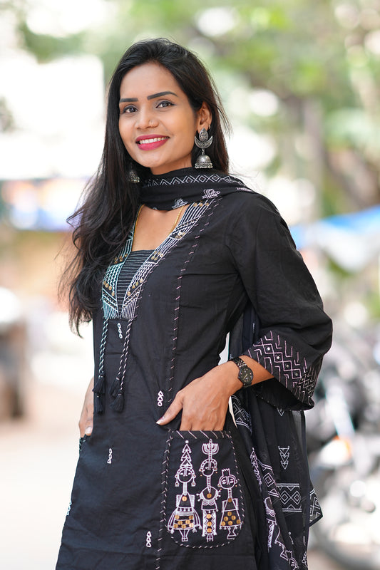 Black Color Jaipur Cotton Designer Wear 3 Piece Set