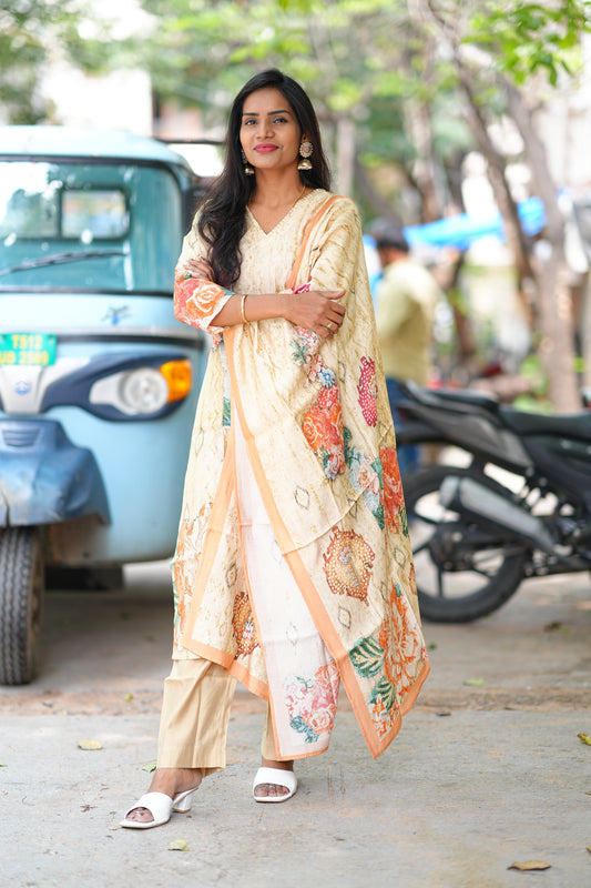 Peach Shade Mul Chanderi 3 Piece Set With Complete Lining