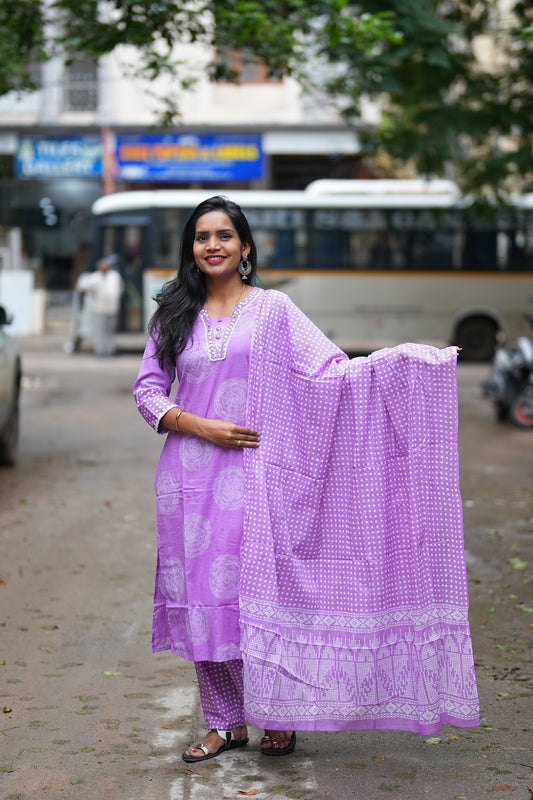 Lavender Jaipur Cotton Office Wear 3 Piece Set With Complete Lining