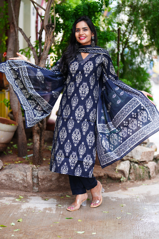 Blue Color Office Wear Jaipur Cotton 3 Piece Set With Complete Lining