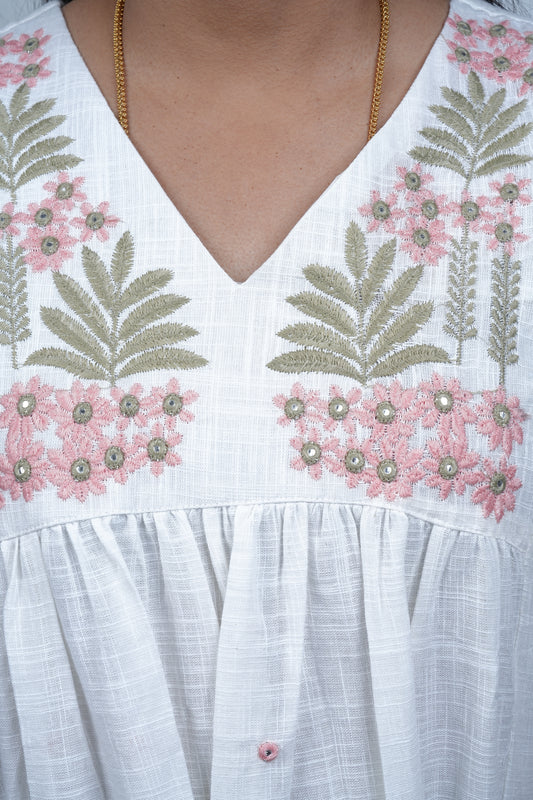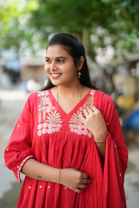 Beautiful Pure Jaipur Cotton Thread Embroidery Anarkali 3 Piece Set with Lining and Palazzo Pant