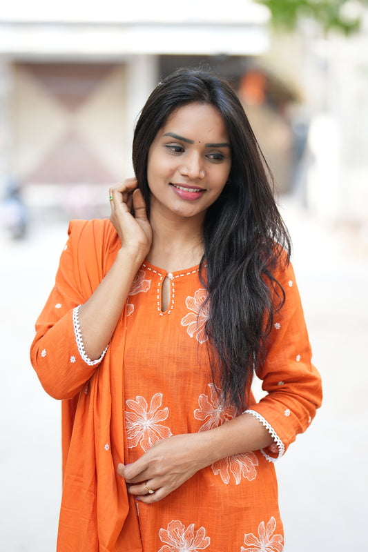 Beautiful Orange Jaipur Slub Cotton 3 Piece Set
