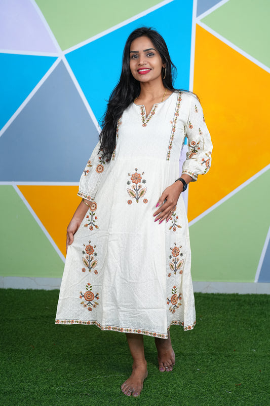 Cream Color Viscose Party Wear Frock
