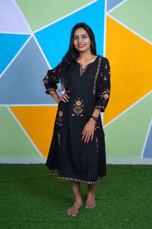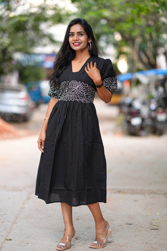 Black Color Designer Frock in Cotton