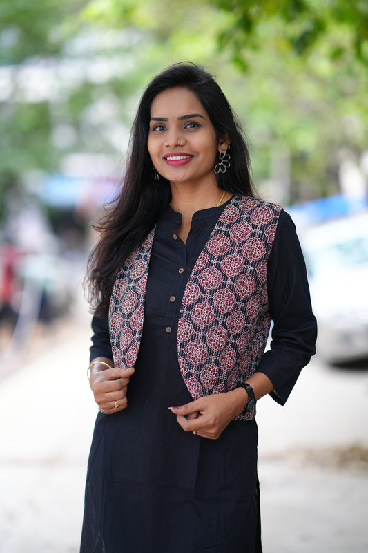Jaipur Cotton Black Color Top With Ajrak Print Coat