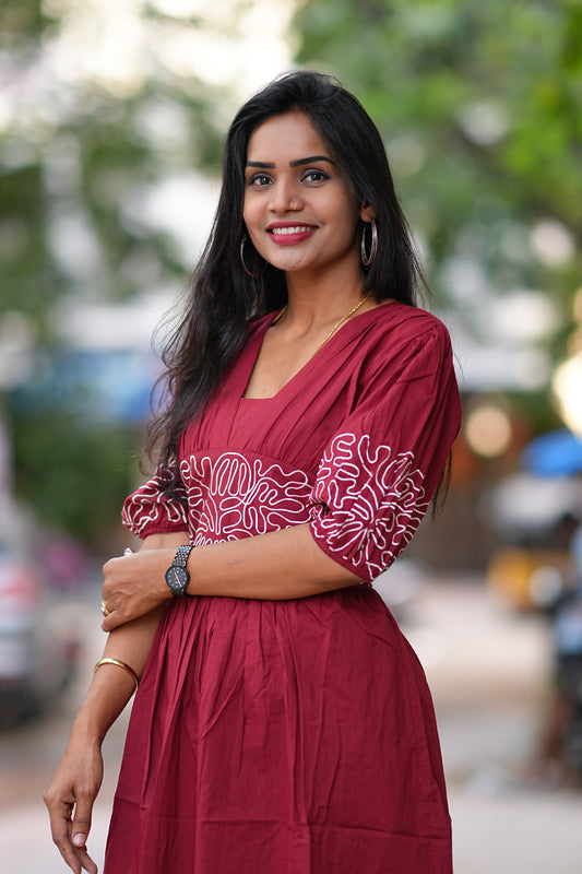 Maroon Color Designer Frock in Cotton