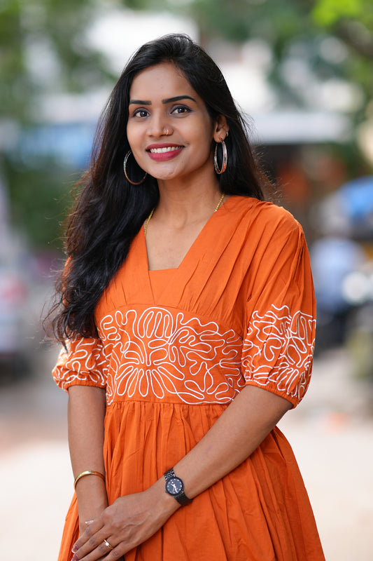 Orange Color Designer Frock in Cotton