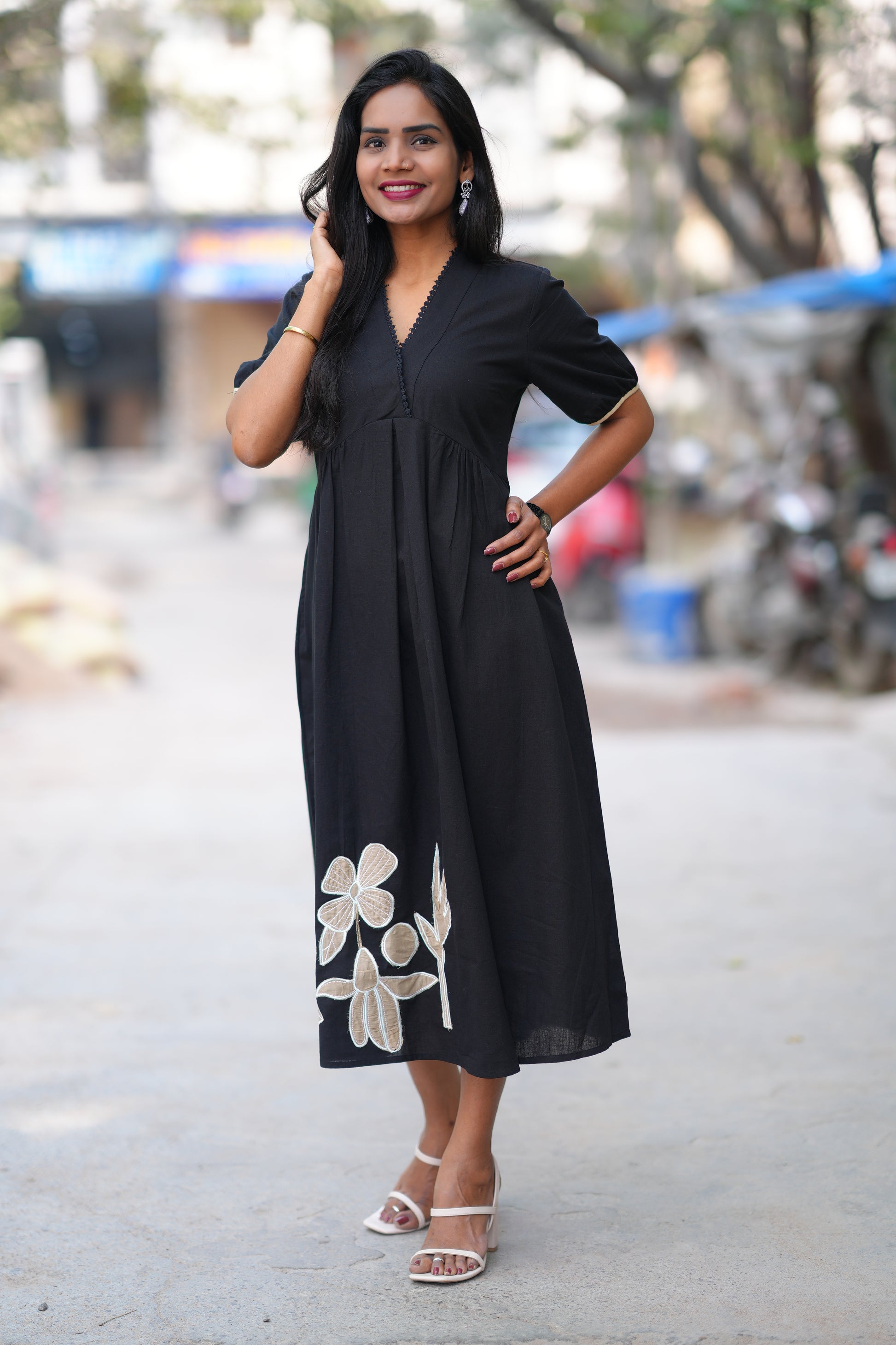 Black Color Jaipuri Cotton Frock With Embroidery Work
