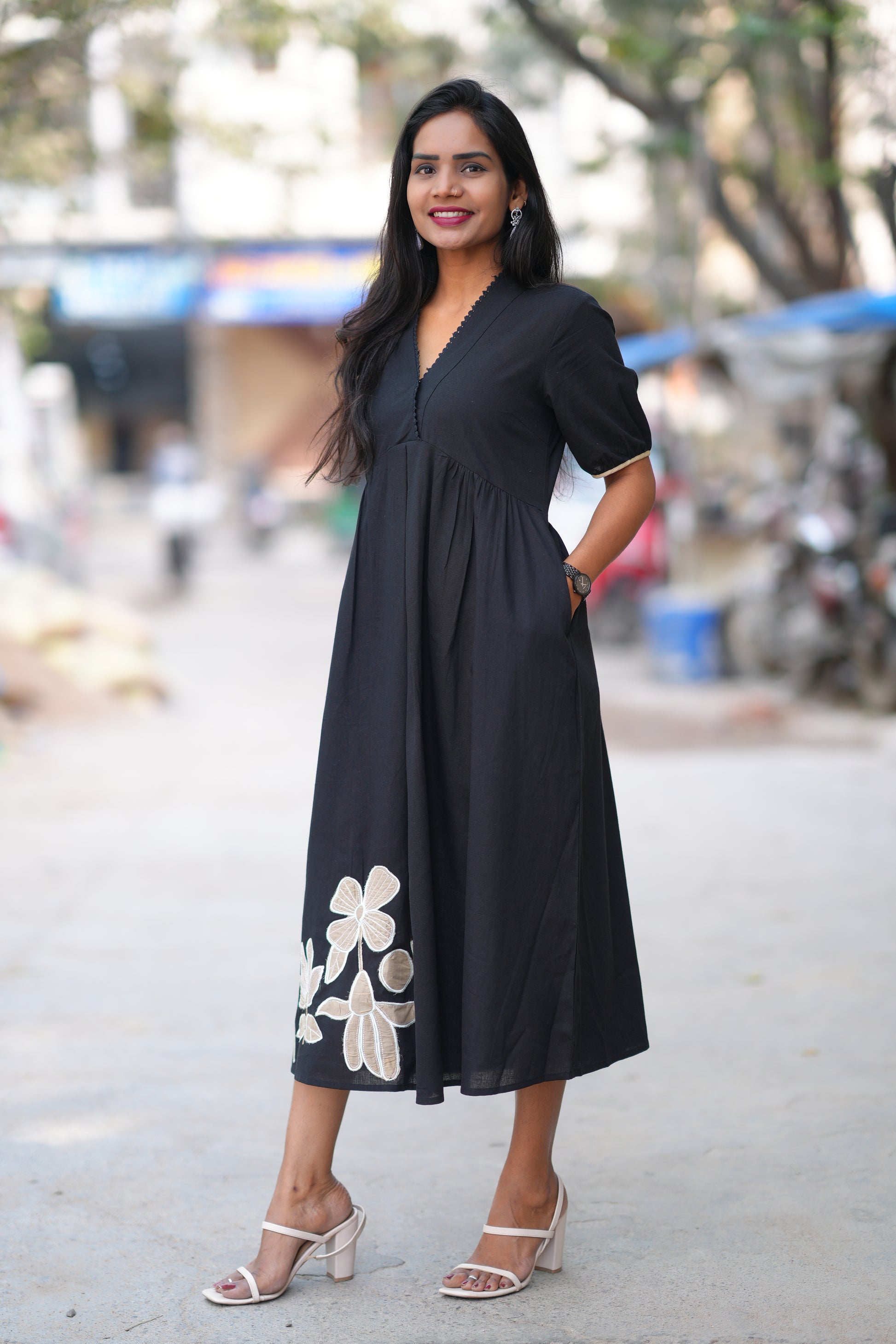 Discover the timeless elegance of our Black Jaipuri Cotton Frock, a masterpiece of traditional craftsmanship. Crafted from premium cotton, this frock features intricate hand-embroidery work that showcases authentic Jaipuri artistry. The classic black hue offers versatility for any occasion, while the detailed embellishments add sophistication and cultural charm. Perfect for those who appreciate quality fabrics and skilled needlework, this piece combines comfort with refined style. An ideal choice for celebrations, gatherings, or everyday wear that makes a statement.