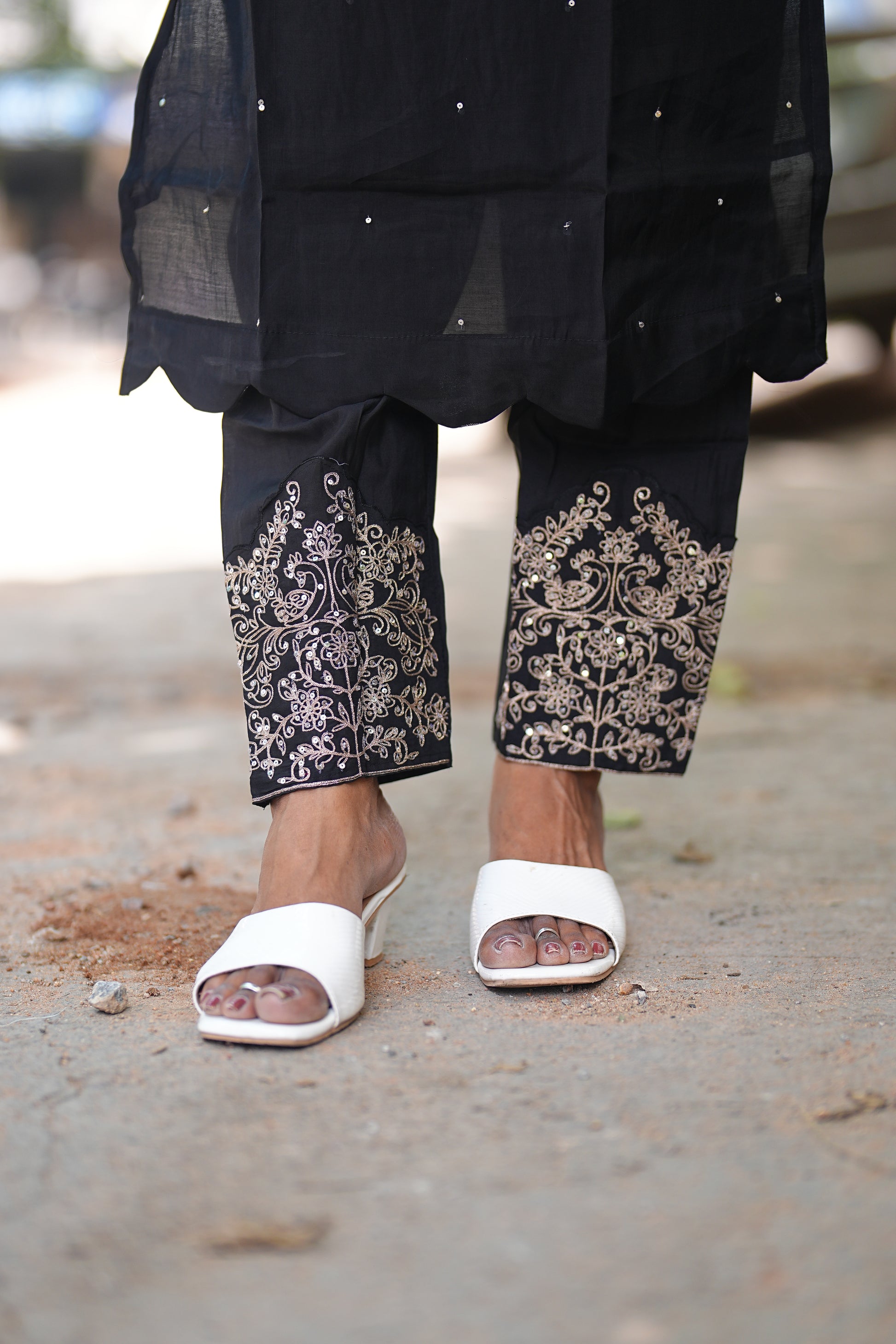 Black Color Mul Chandheri Designer Wear 3 Piece Set