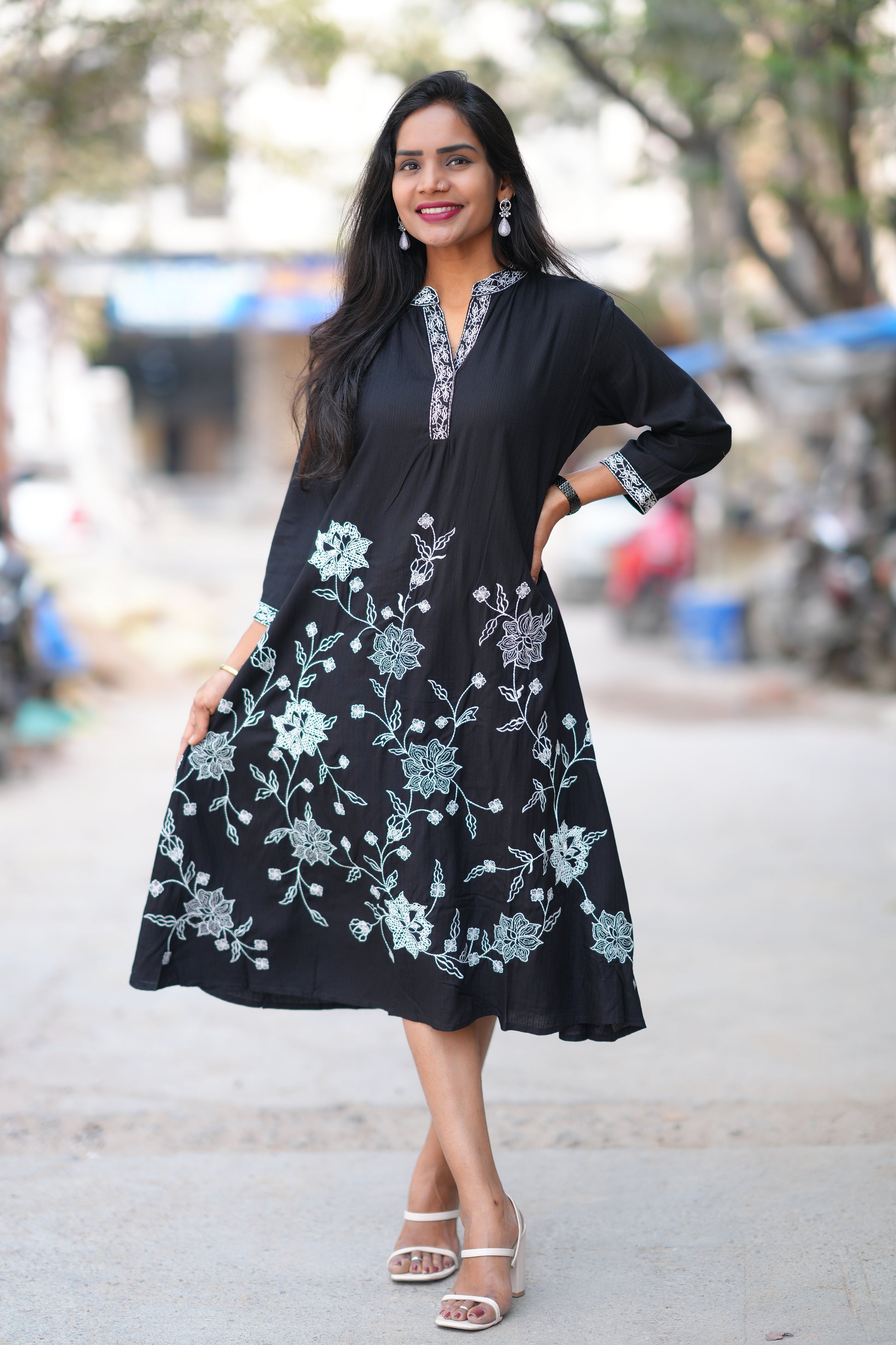Black Color Mul Cotton Frock With Embroidery Work and Complete Lining Crafted from premium mul cotton, this black frock combines breathable comfort with refined elegance. Intricate embroidery detailing adorns the garment, adding a sophisticated touch perfect for both casual and semi-formal occasions. The complete lining ensures durability and a smooth, comfortable fit against the skin. Ideal for everyday wear or special gatherings, this piece offers timeless style with quality construction that lasts.