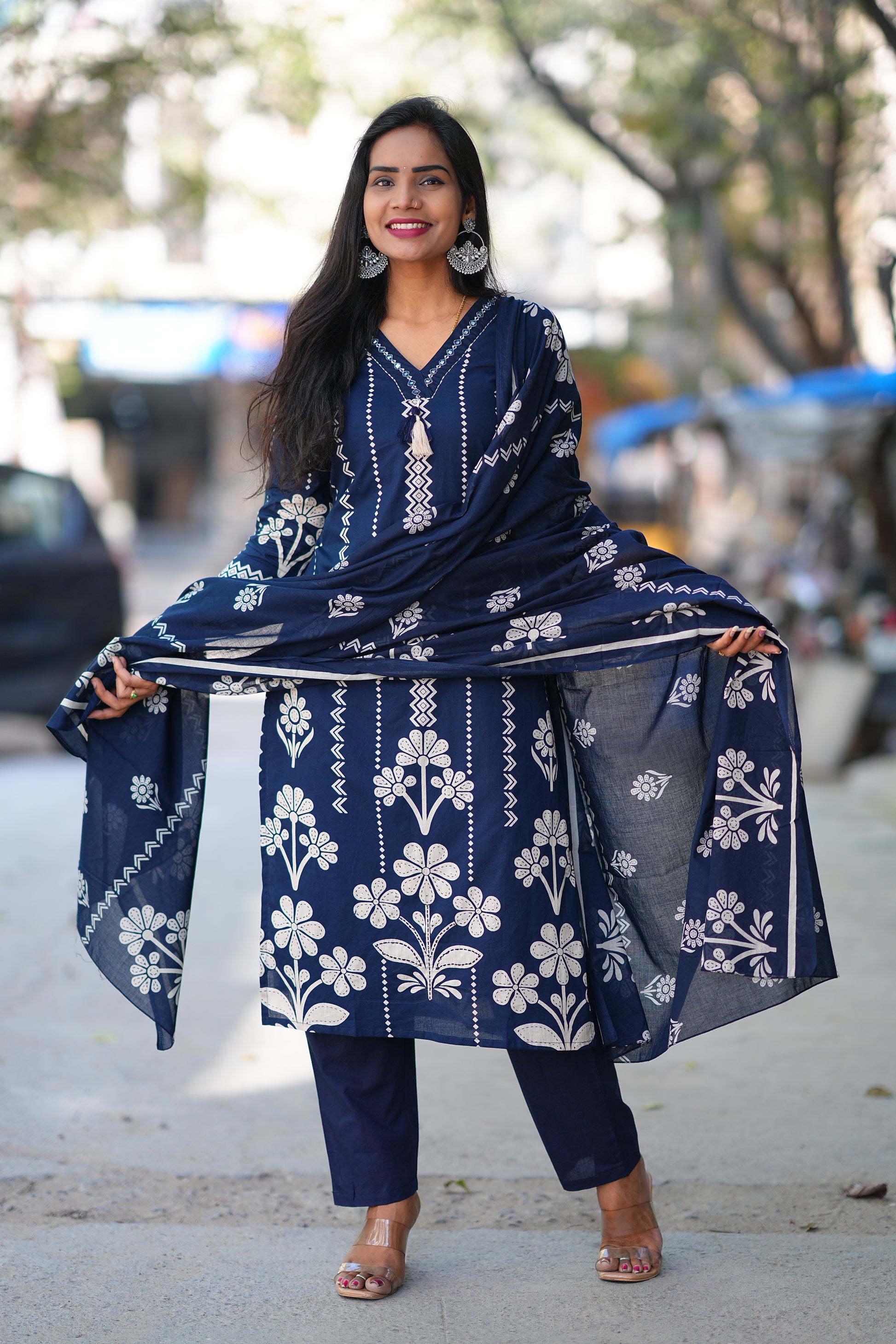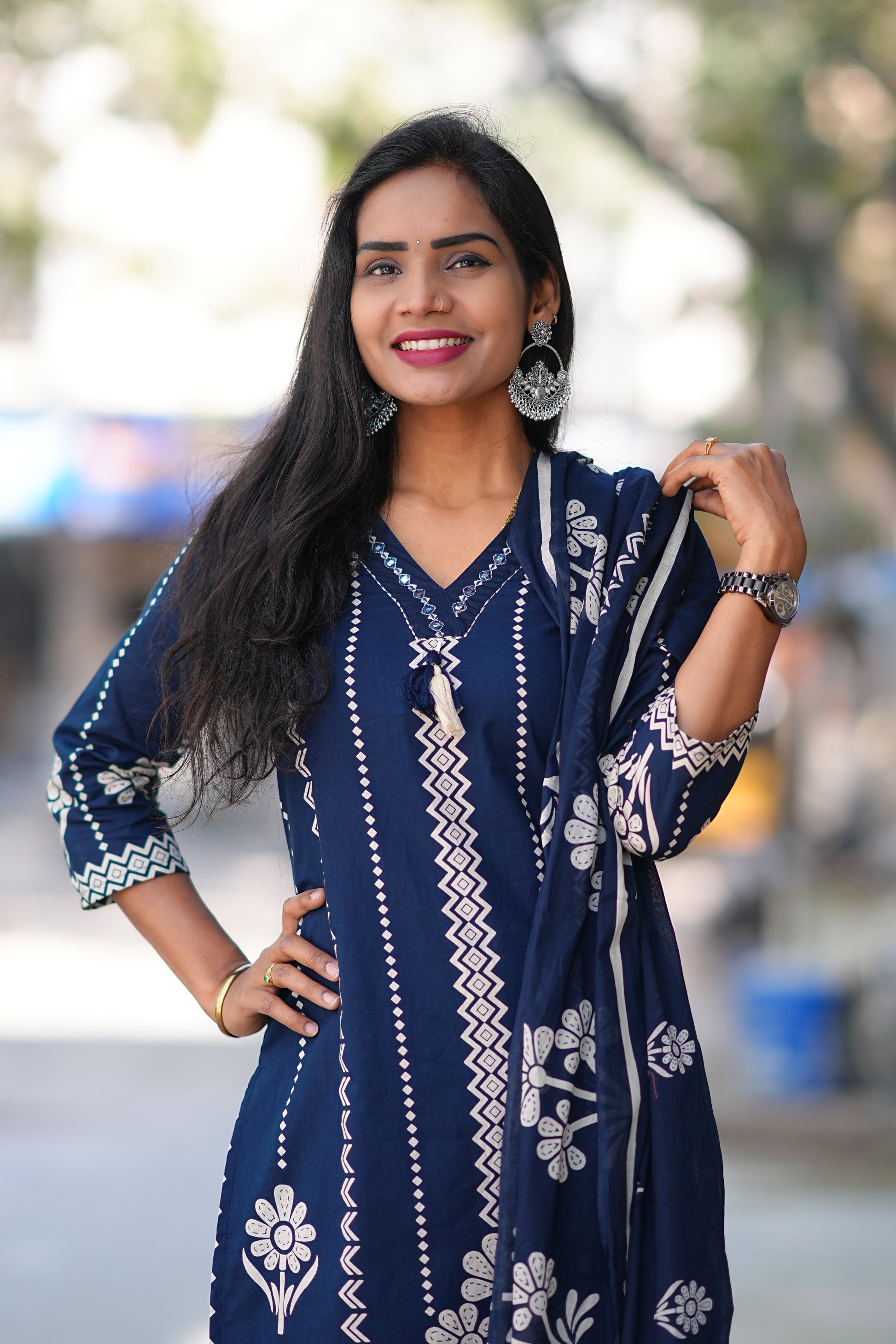 Blue Color Jaipuri Cotton 3 Piece Set With Discharge Print Design Crafted from premium Jaipuri cotton, this three-piece set combines traditional artistry with everyday versatility. The striking discharge print design showcases intricate patterns rendered in rich blue tones, creating visual depth and authentic character. Each piece is thoughtfully constructed to offer comfort and durability, making this set ideal for layering or wearing individually. The natural breathability of cotton ensures all-day wearability, while the discharge printing technique preserves fabric softness and color vibrancy. Perfect for those who appreciate handcrafted textiles and timeless design.