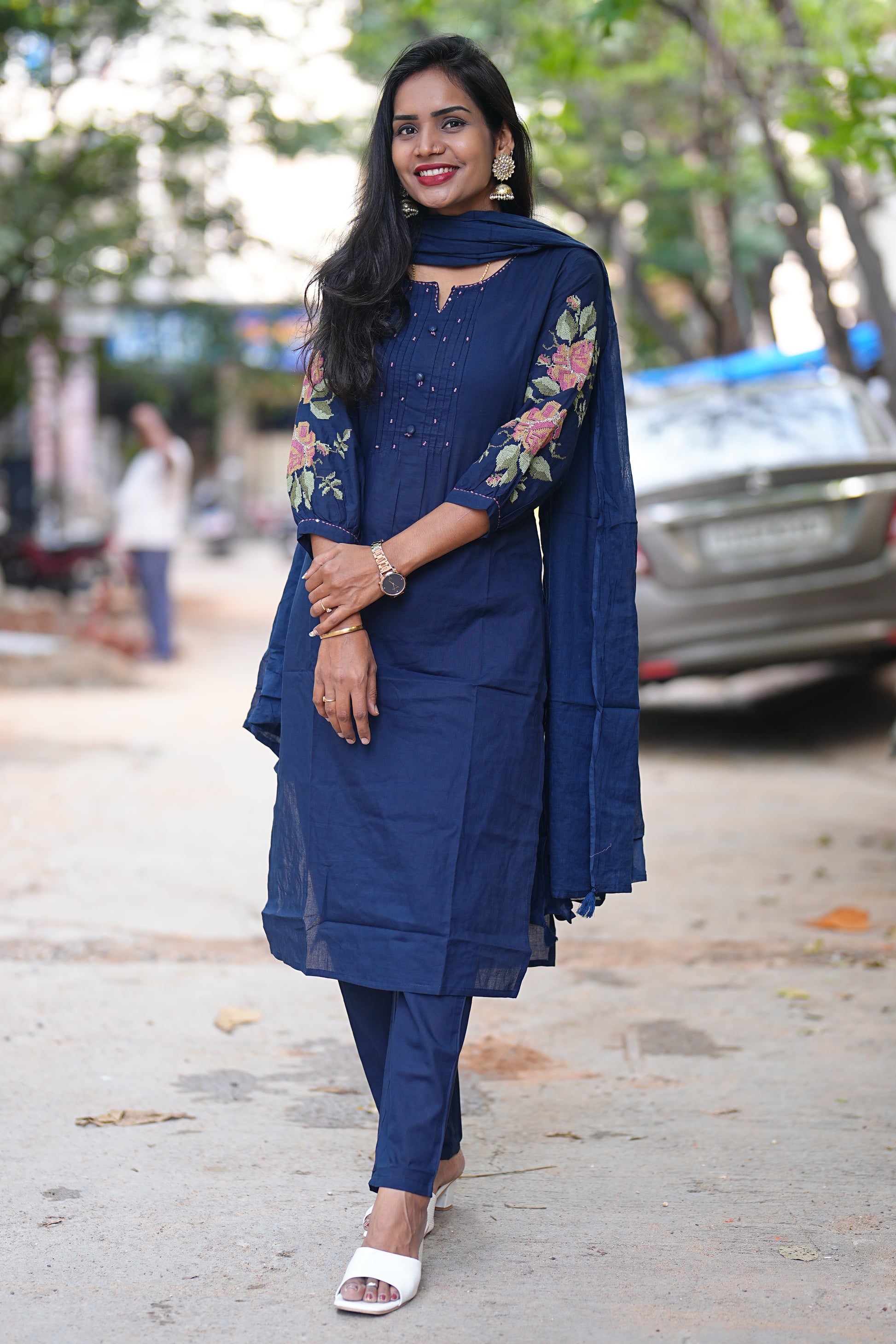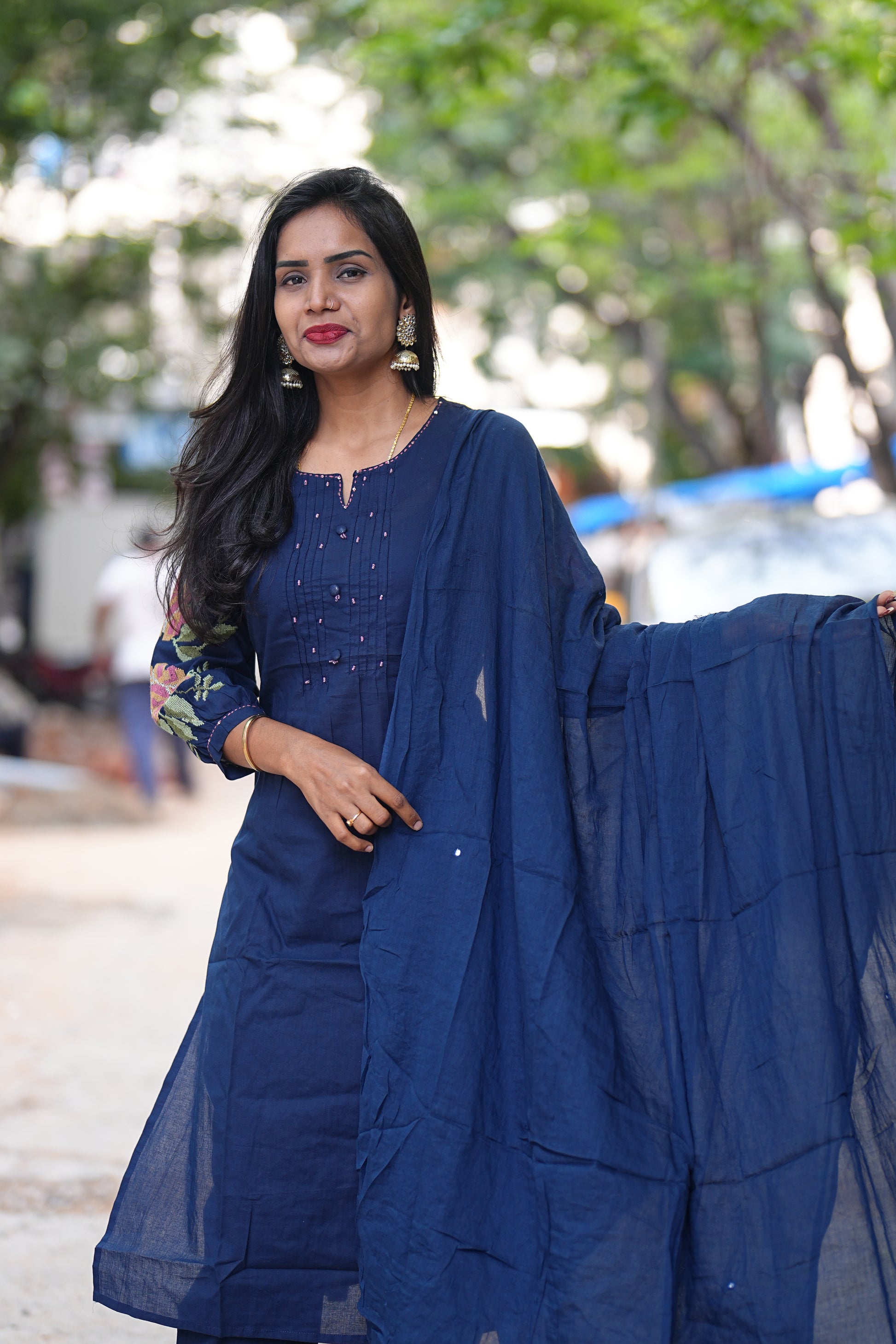 This Blue Color Jaipuri Cotton Designer Wear 3 Piece Set features traditional craftsmanship with breathable, high-quality cotton fabric ideal for comfort and style. The set combines exquisite Jaipuri design elements that offer a refined and elegant appearance, perfect for both casual and semi-formal occasions. Its lightweight material ensures ease of wear while maintaining an authentic ethnic look.