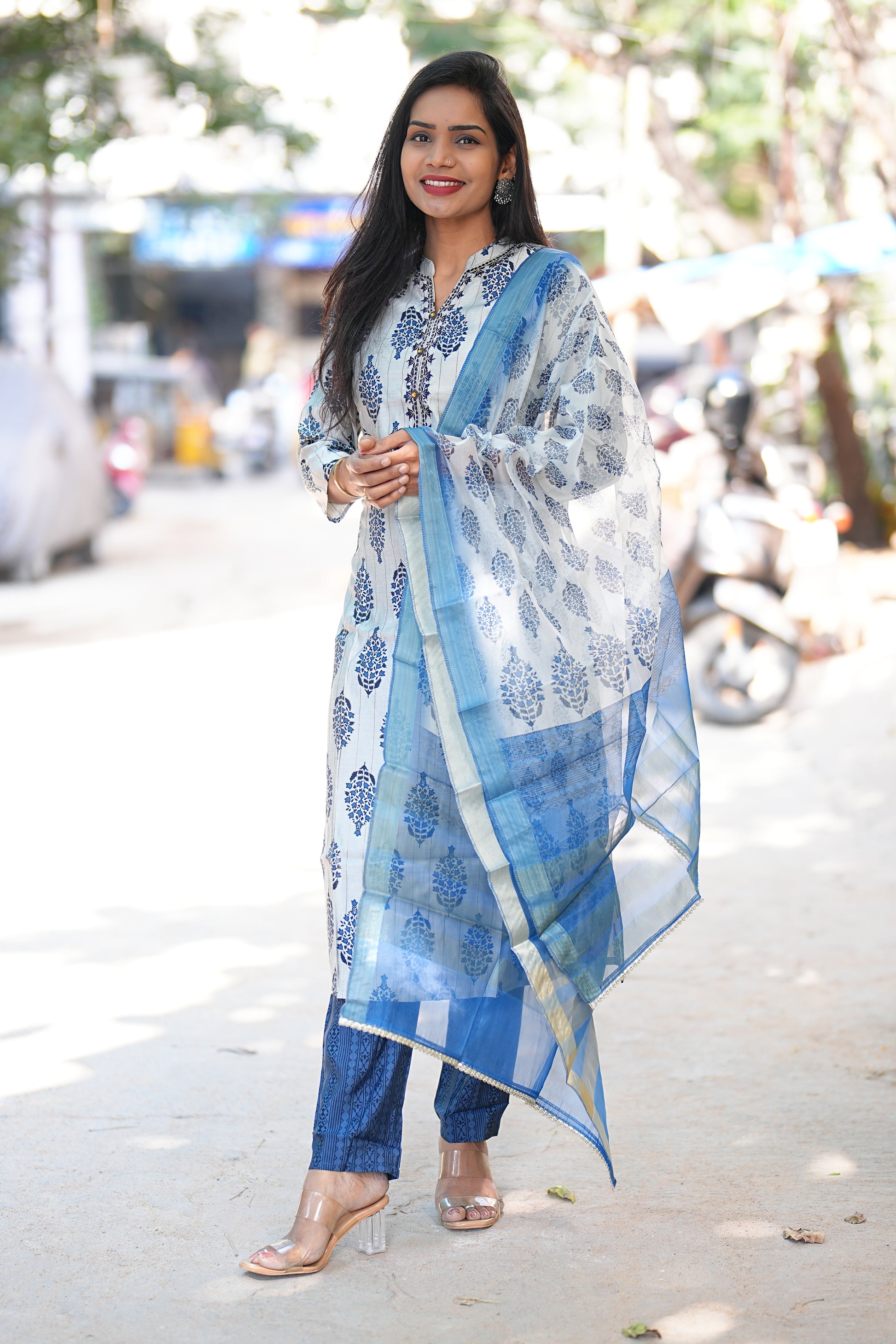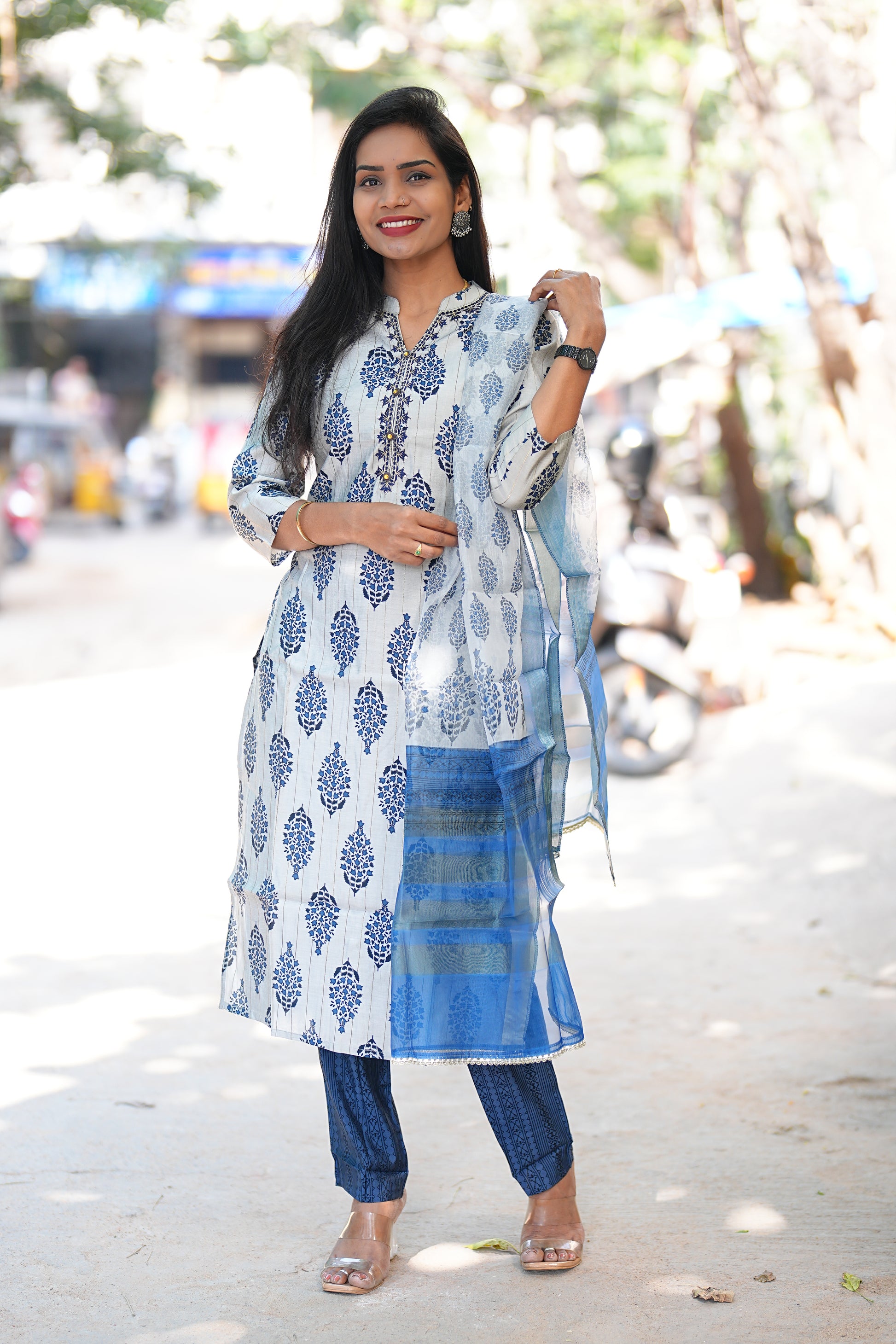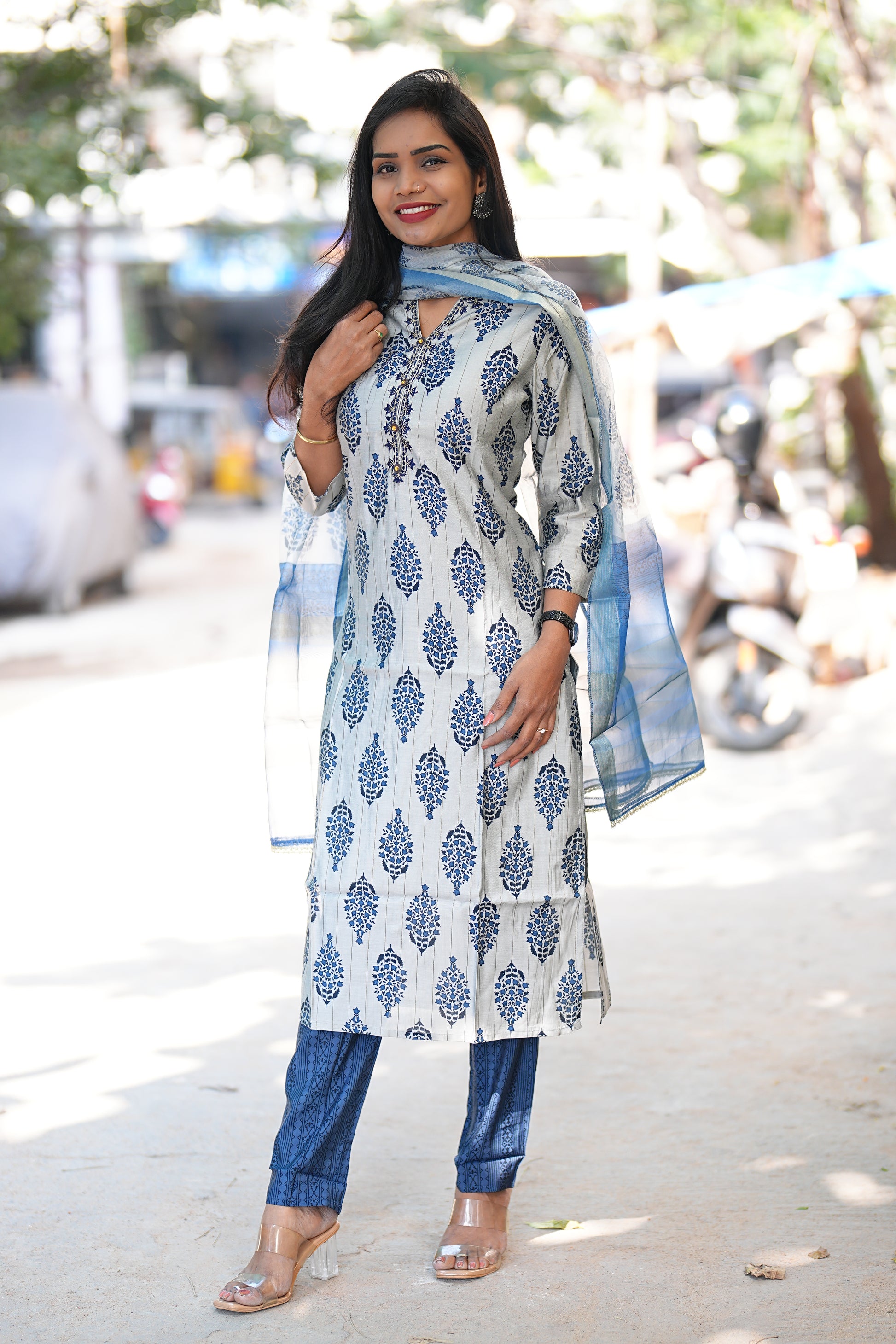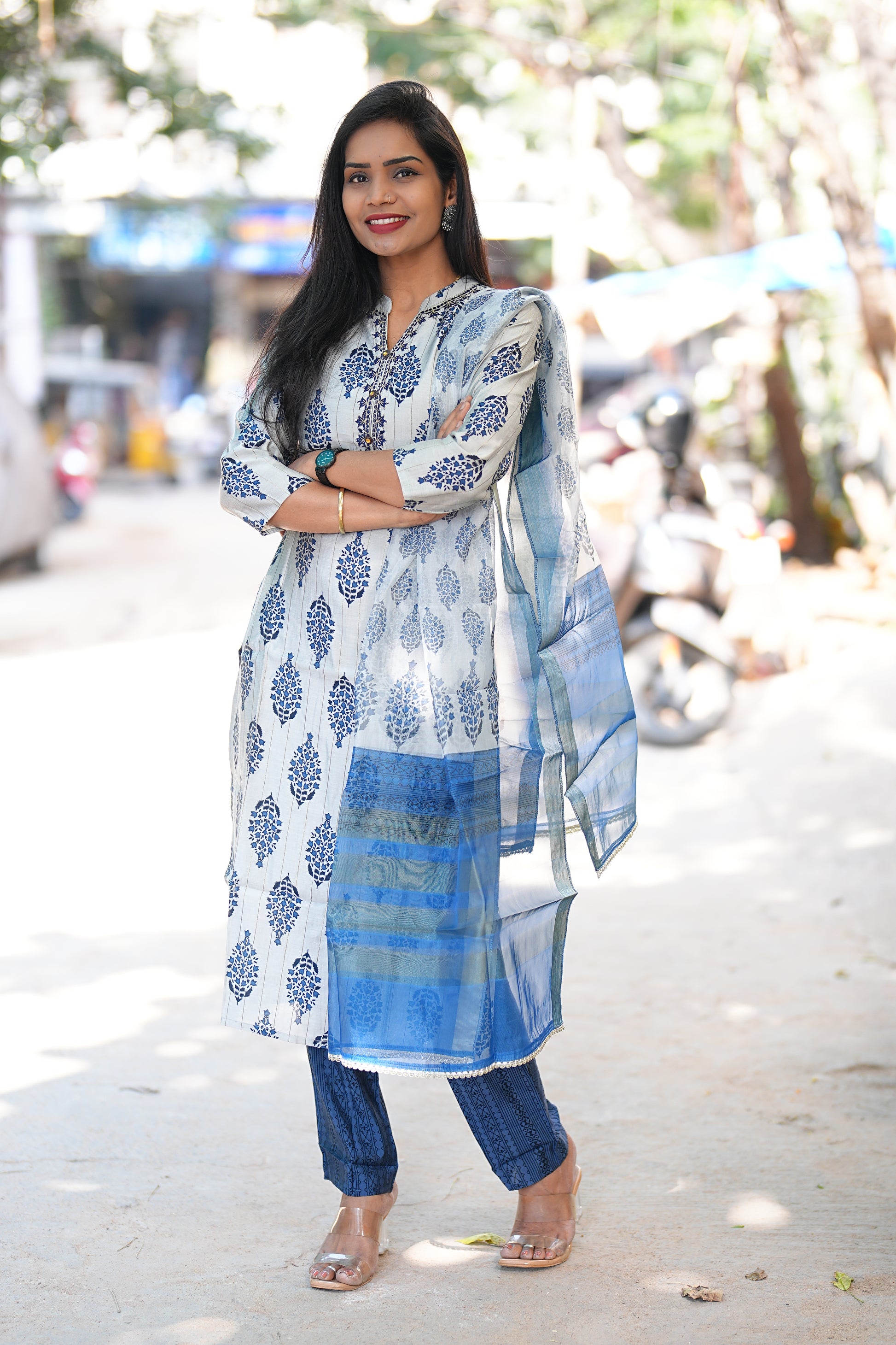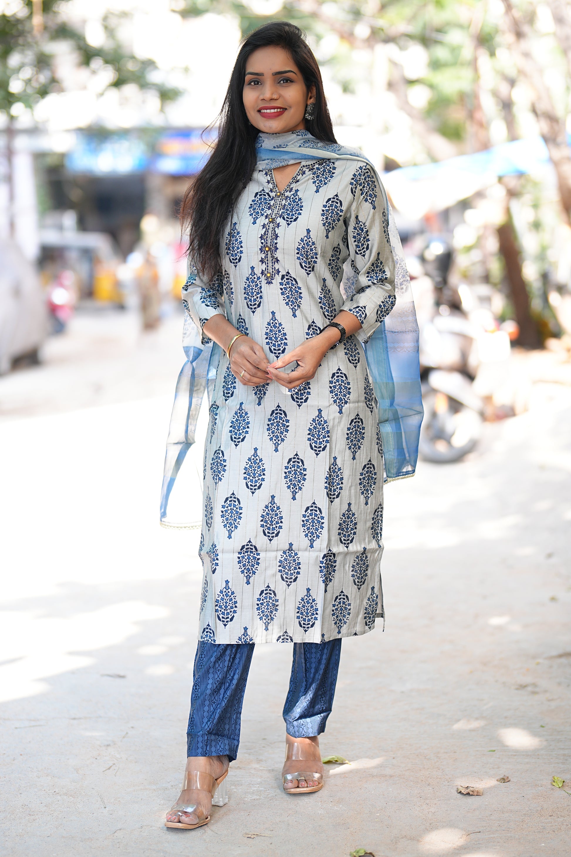 Blue Color Office Wear 3 Piece set in Viscose Fabric