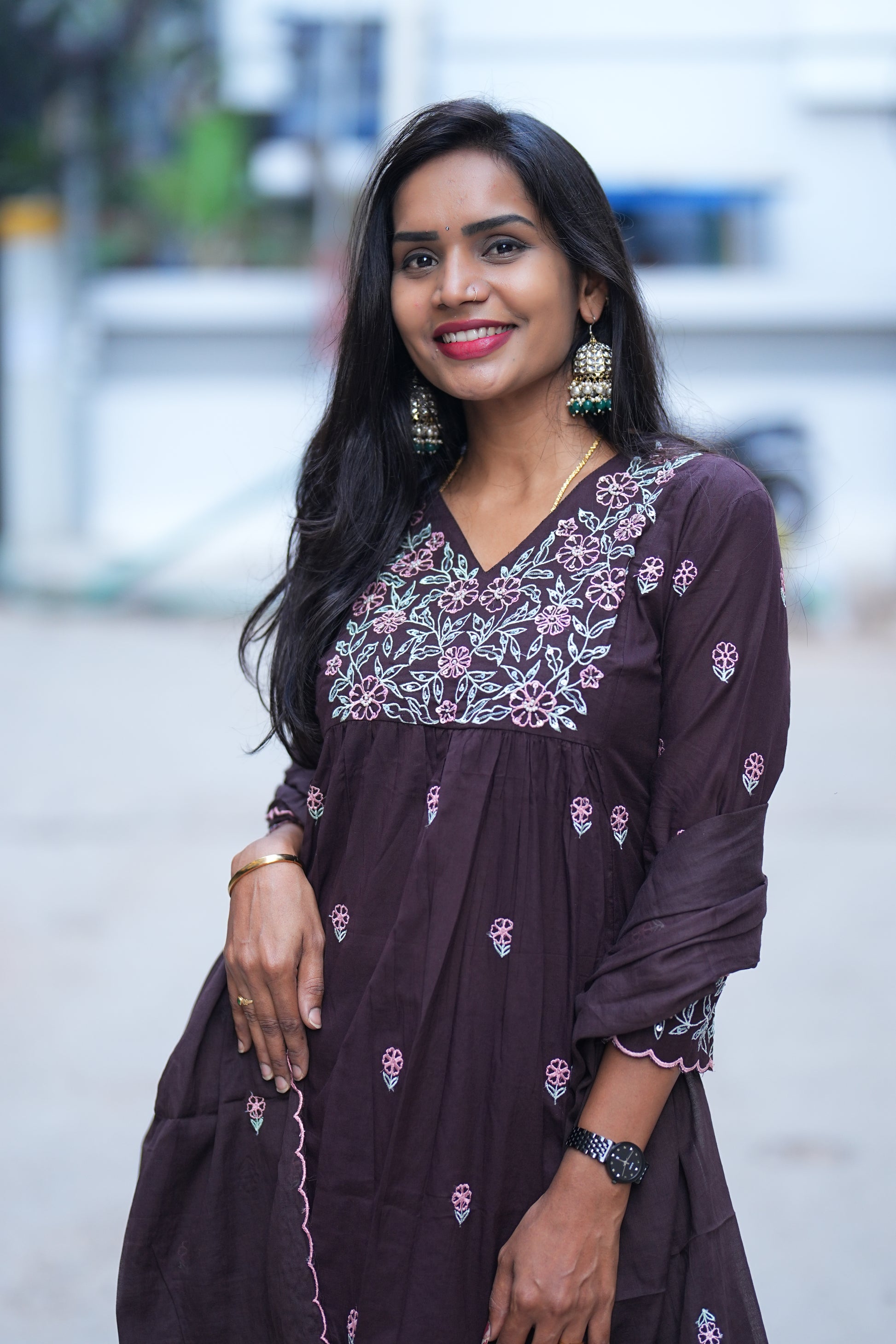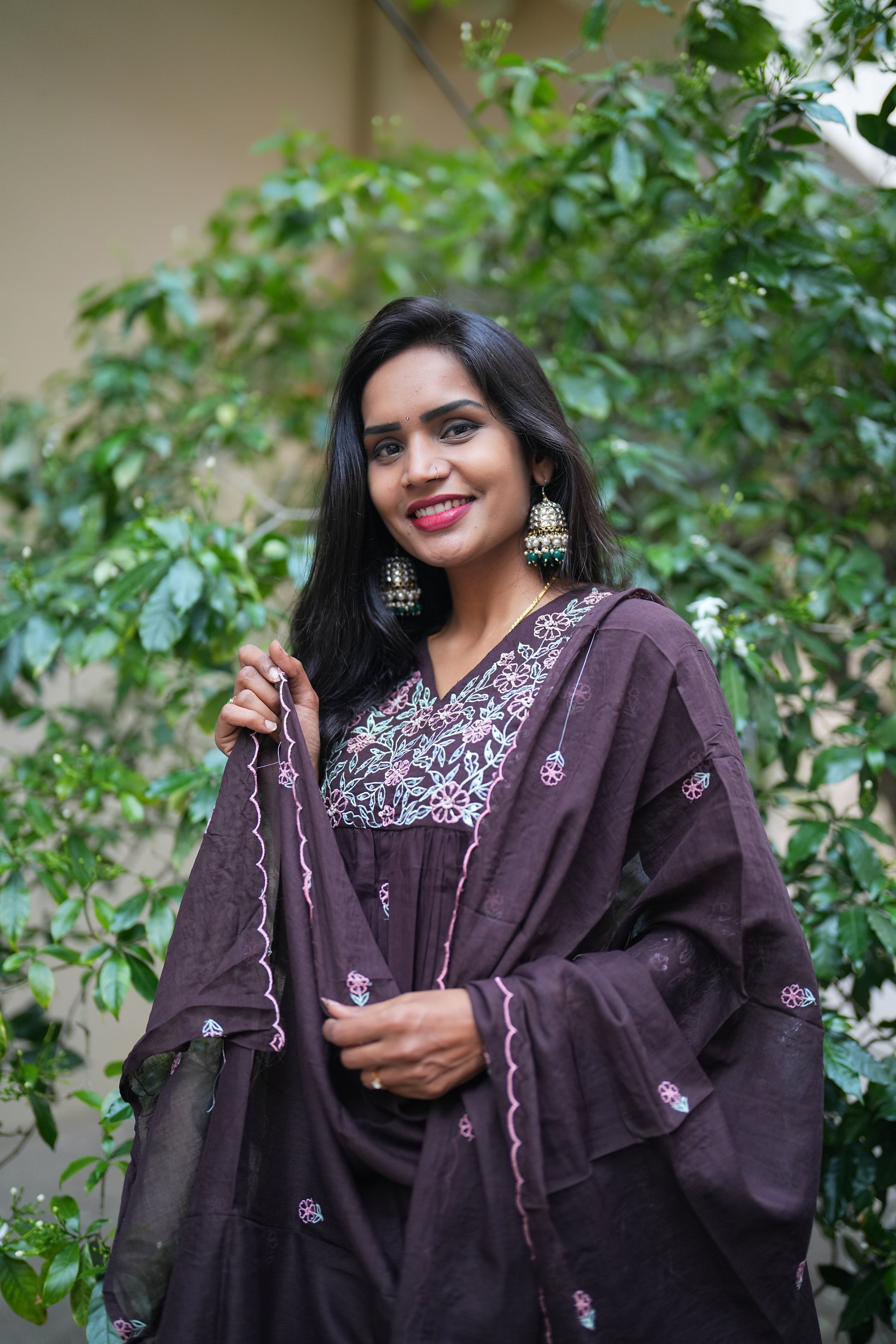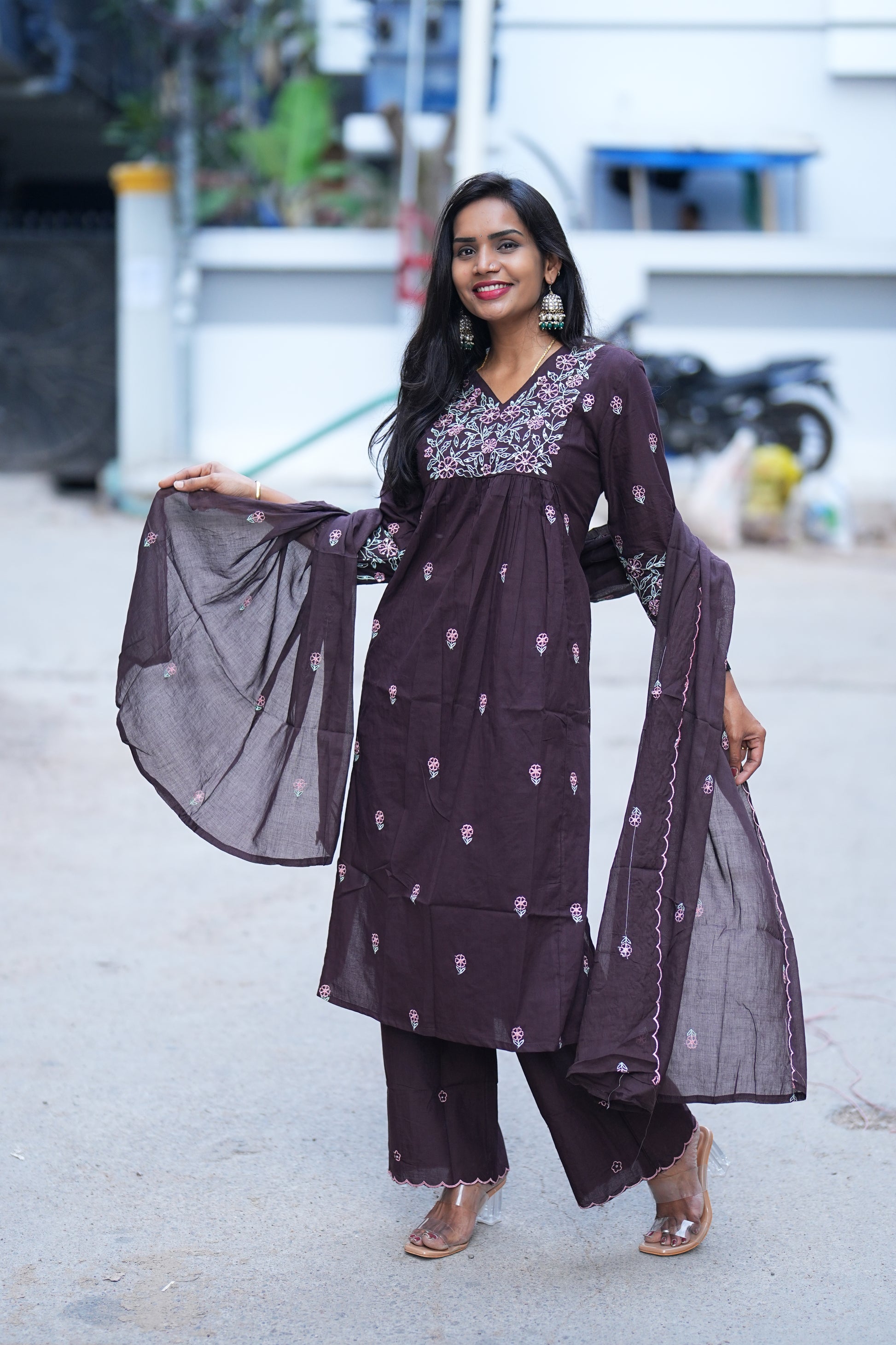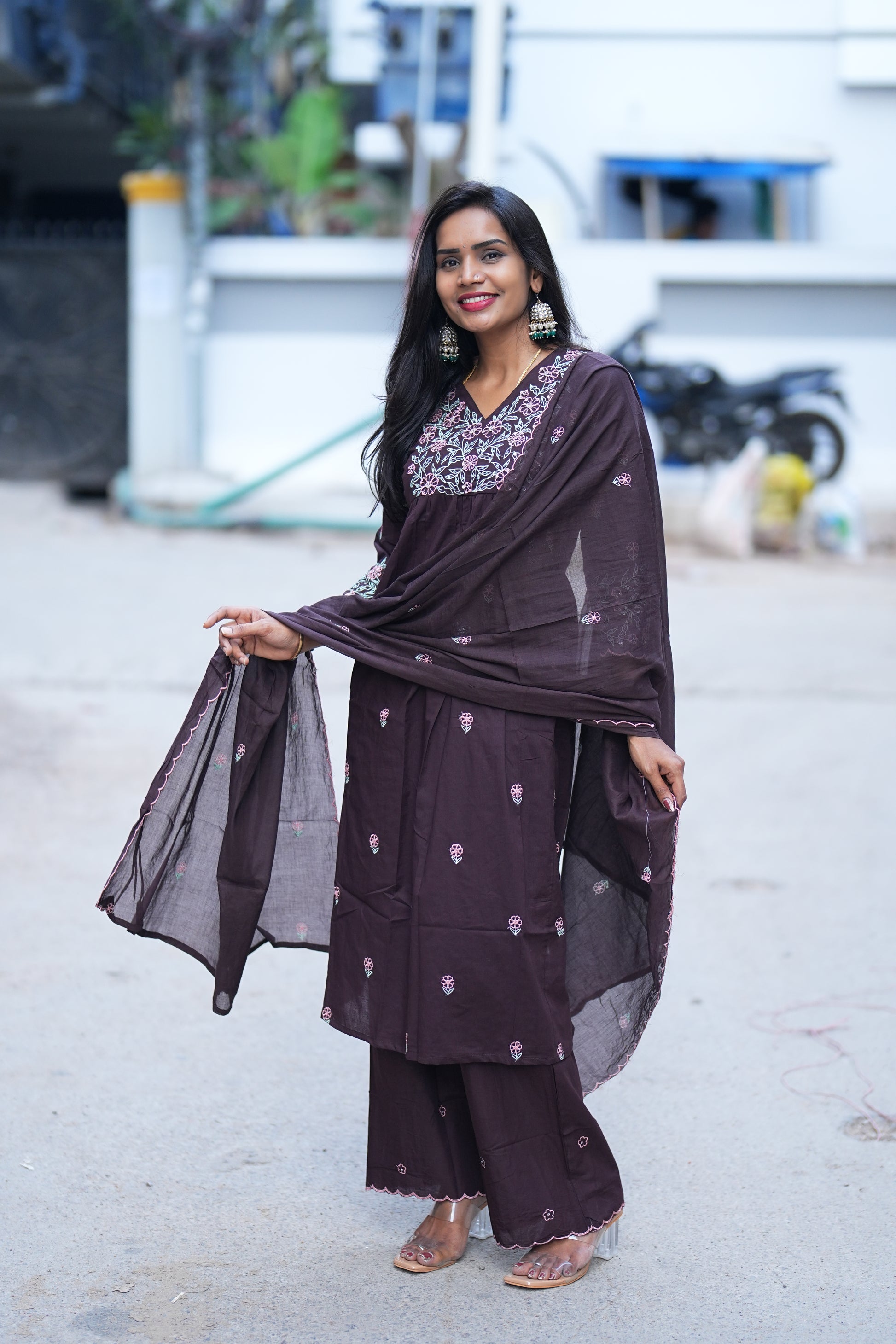 Experience the elegance of traditional craftsmanship with this Brown Color Jaipur Cotton 3 Piece Set. Crafted from breathable Jaipur cotton, it features intricate thread embroidery that adds subtle sophistication. This set offers comfort and style, making it ideal for both casual and semi-formal occasions. Its natural fabric ensures all-day wearability, while the detailed embroidery highlights artisanal skill, perfect for those who appreciate refined ethnic wear.