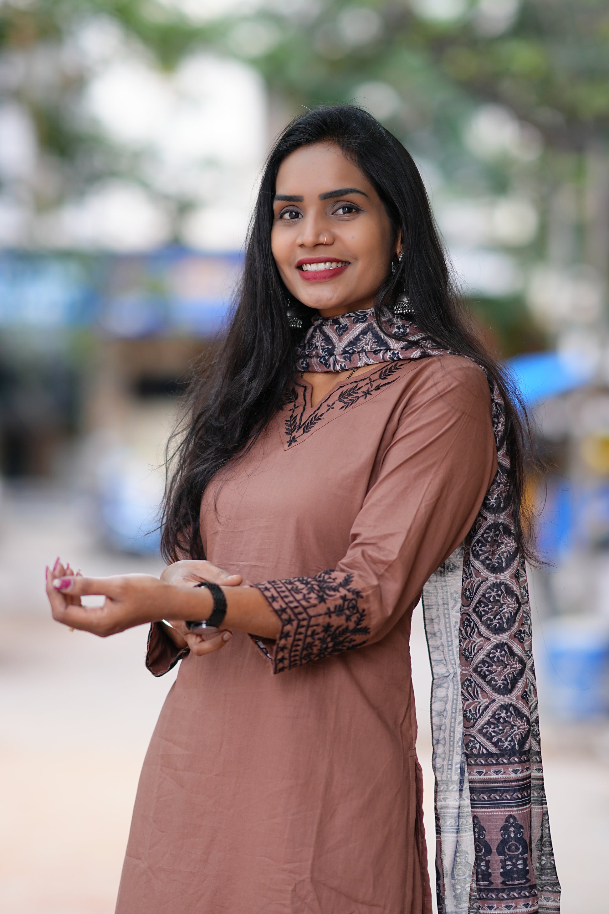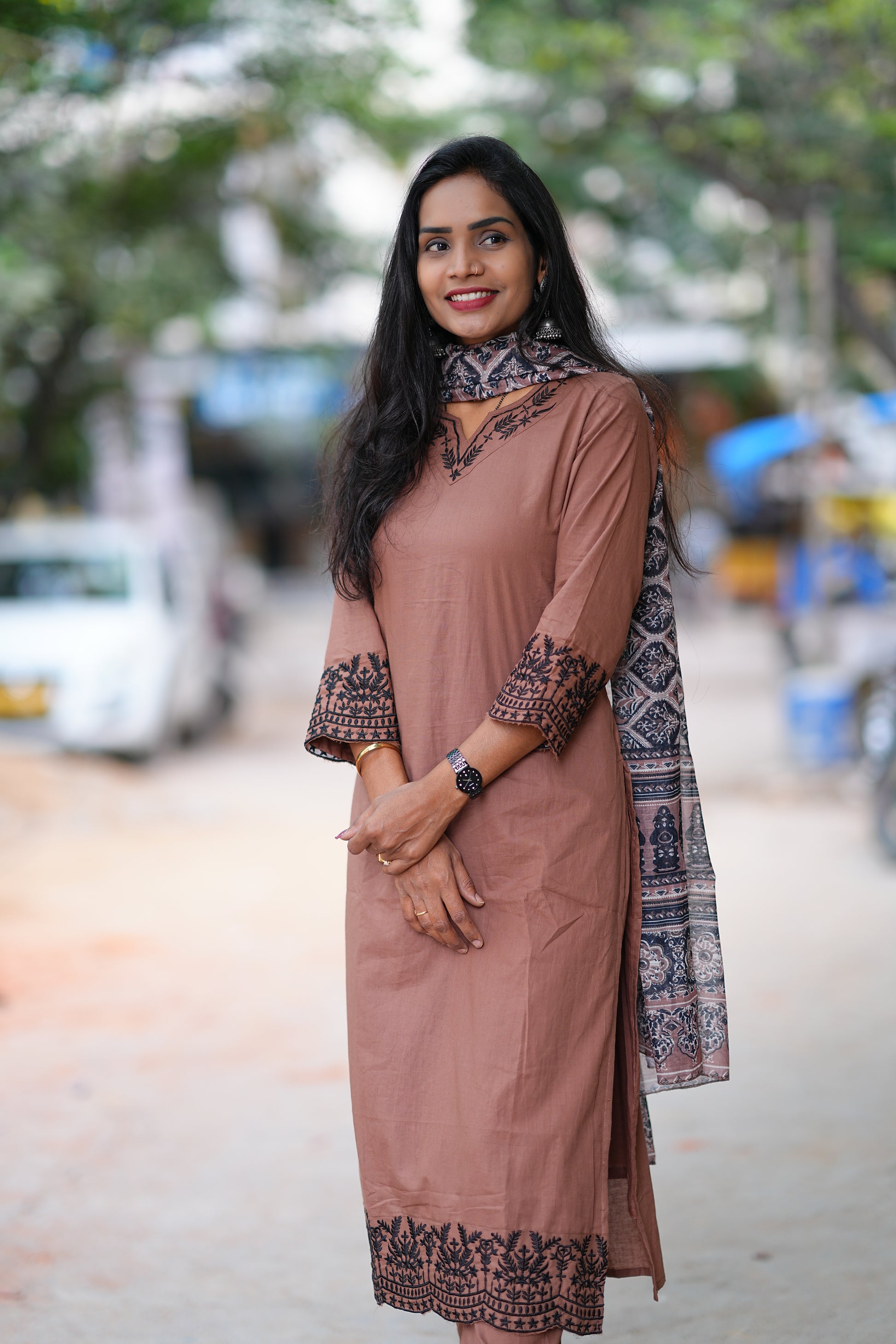 Brown Color Jaipur Cotton Office Wear Dress With Organza Dupatta and Complete Lining Elevate your professional wardrobe with this sophisticated brown cotton dress, expertly crafted in Jaipur using premium quality fabric. The dress features a complete lining for comfort and durability, paired with an elegant organza dupatta that adds a refined finishing touch. Ideal for office settings, business meetings, and formal occasions, this piece combines traditional craftsmanship with contemporary styling. The breathable cotton construction ensures all-day comfort, while the structured design maintains a polished appearance throughout your workday. Perfect for the modern professional seeking timeless elegance and quality.