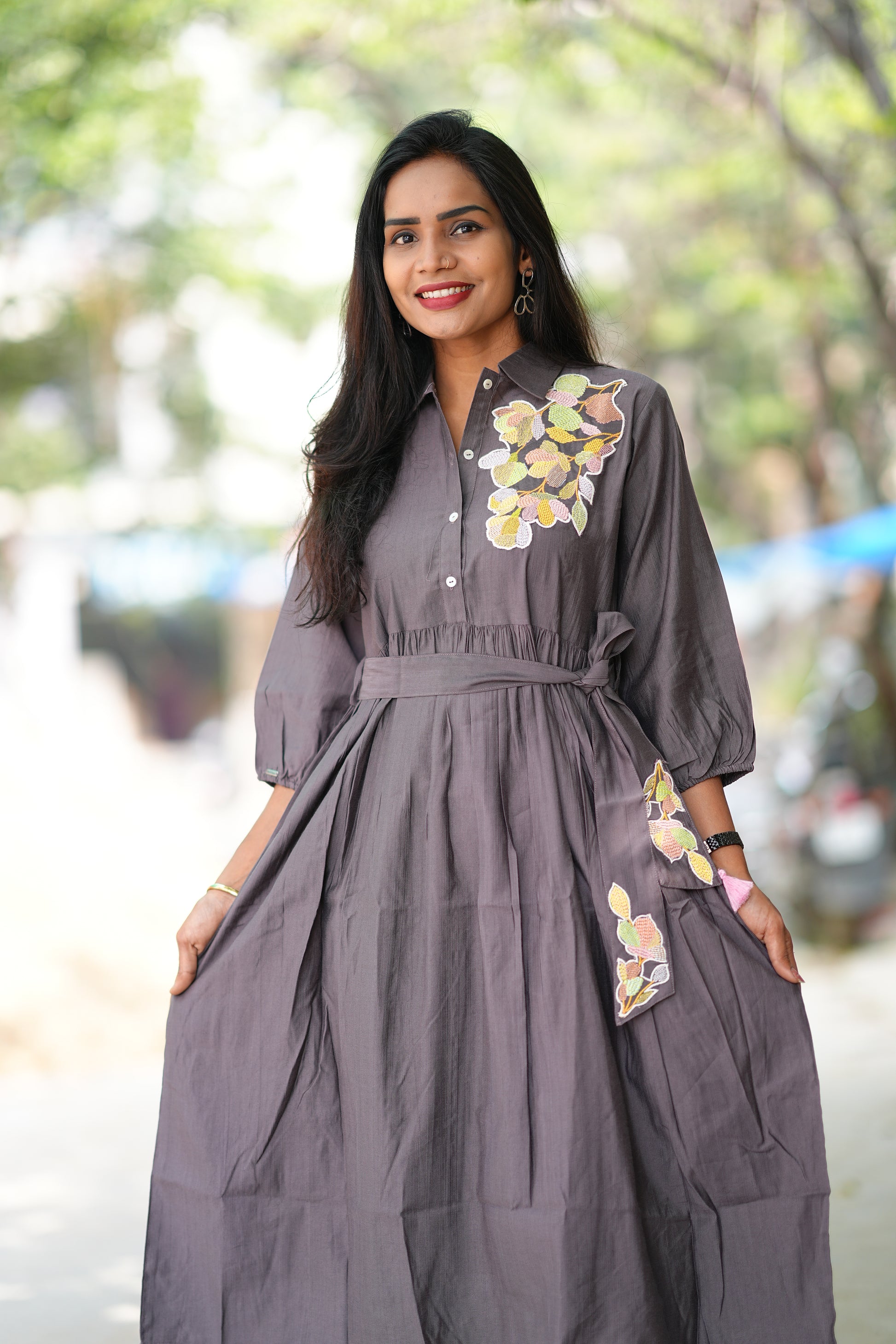 This coffee-colored party wear frock combines elegance with comfort, making it an ideal choice for special occasions. Crafted from quality fabric, it offers a flattering fit that enhances your silhouette while ensuring ease of movement. The rich, warm hue adds a sophisticated touch, perfect for evening events or festive gatherings. Its design balances style and practicality, allowing you to make a confident statement at any party.
