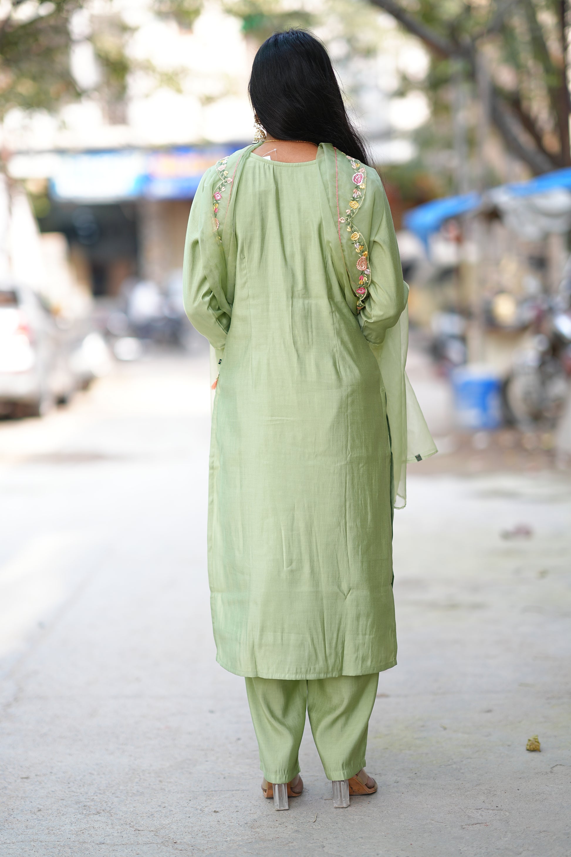 Elevate your festive wardrobe with this sophisticated three-piece ensemble crafted from premium viscose fabric. The set features a beautifully coordinated kurta, complemented by matching bottoms and an intricately designed dupatta that adds an elegant finishing touch. Viscose's natural drape and breathable qualities ensure comfort throughout celebrations, while the rich green hue flatters diverse skin tones. Perfect for weddings, festivals, and special occasions, this versatile set transitions seamlessly from daytime gatherings to evening events. The designer dupatta elevates the entire look with its refined detailing, making it an investment piece for your ethnic collection.