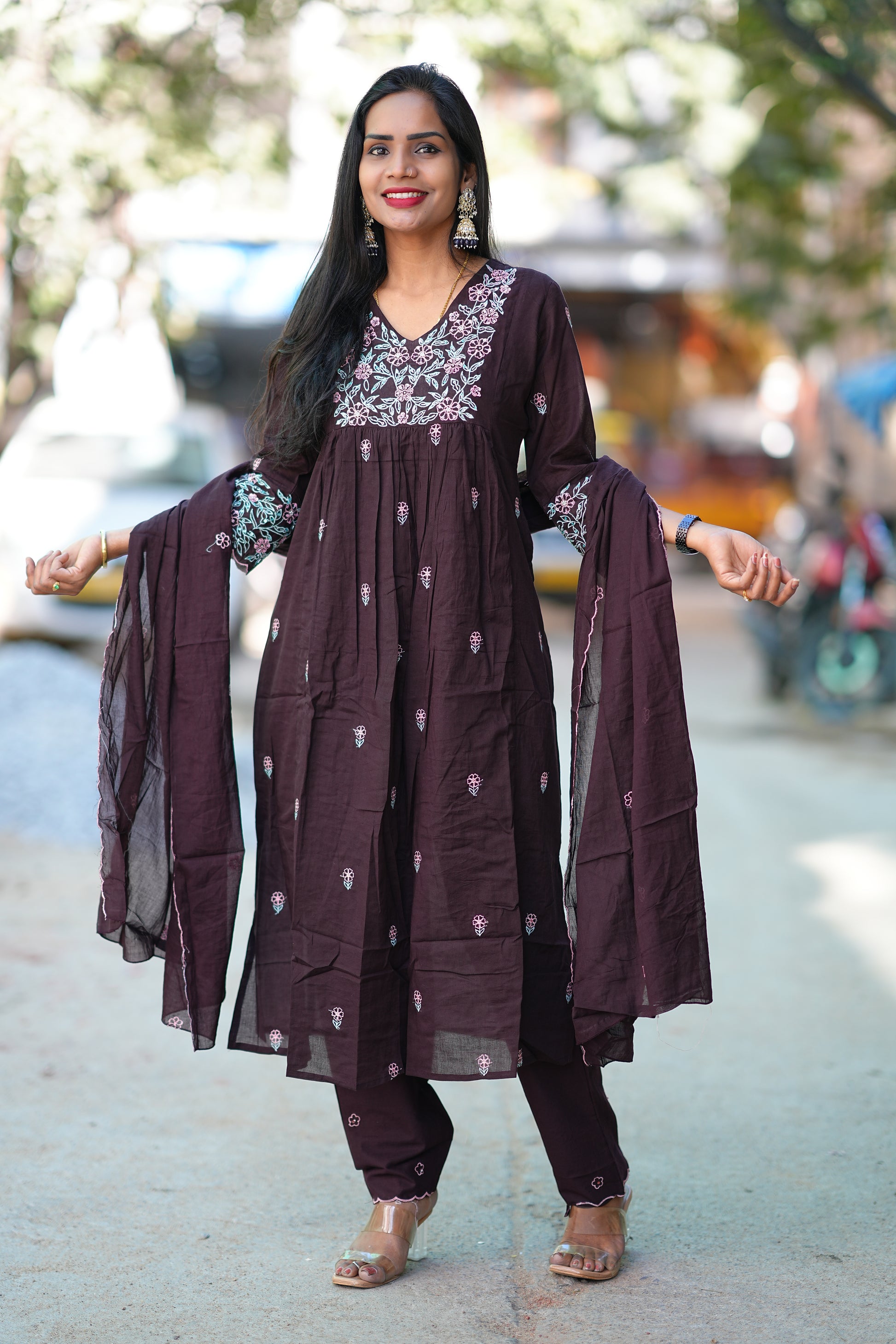 Jaipur Cotton Brown Color Designer Wear 3 Piece set With Complete lining