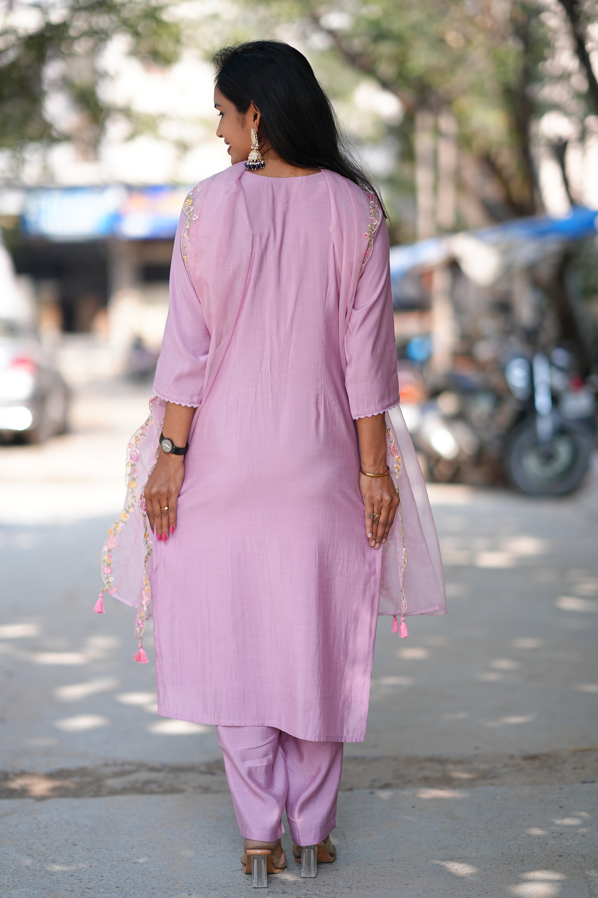 Elevate your festive celebrations with this exquisite lavender three-piece ensemble crafted from premium viscose fabric. The set features a beautifully coordinated kurta, complemented by matching bottoms and an intricately designed dupatta that adds sophistication to your ethnic wardrobe. Viscose's natural drape and breathable qualities ensure comfort throughout your festivities, while the refined lavender hue offers a contemporary take on traditional wear. Perfect for weddings, family gatherings, and special occasions, this versatile set combines timeless elegance with modern sensibility. Ideal for those seeking refined festive fashion that balances comfort with style.