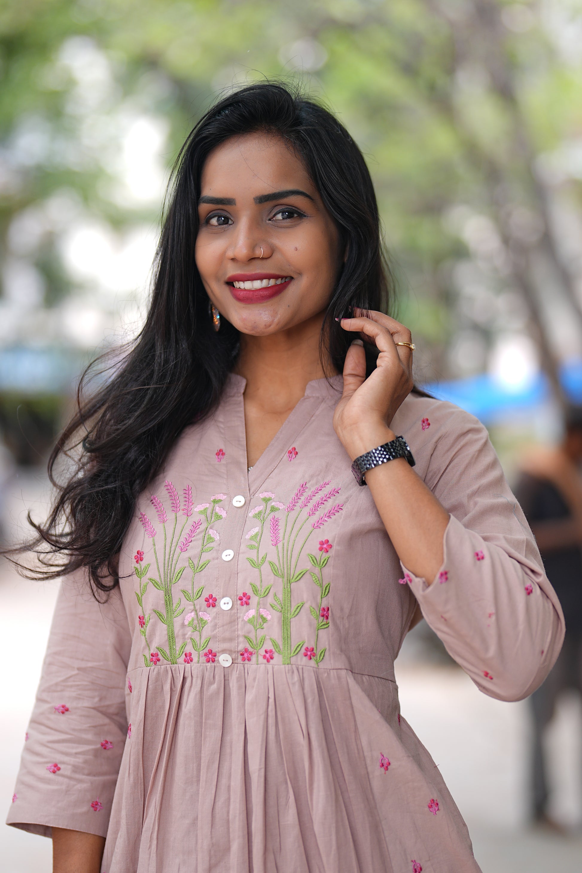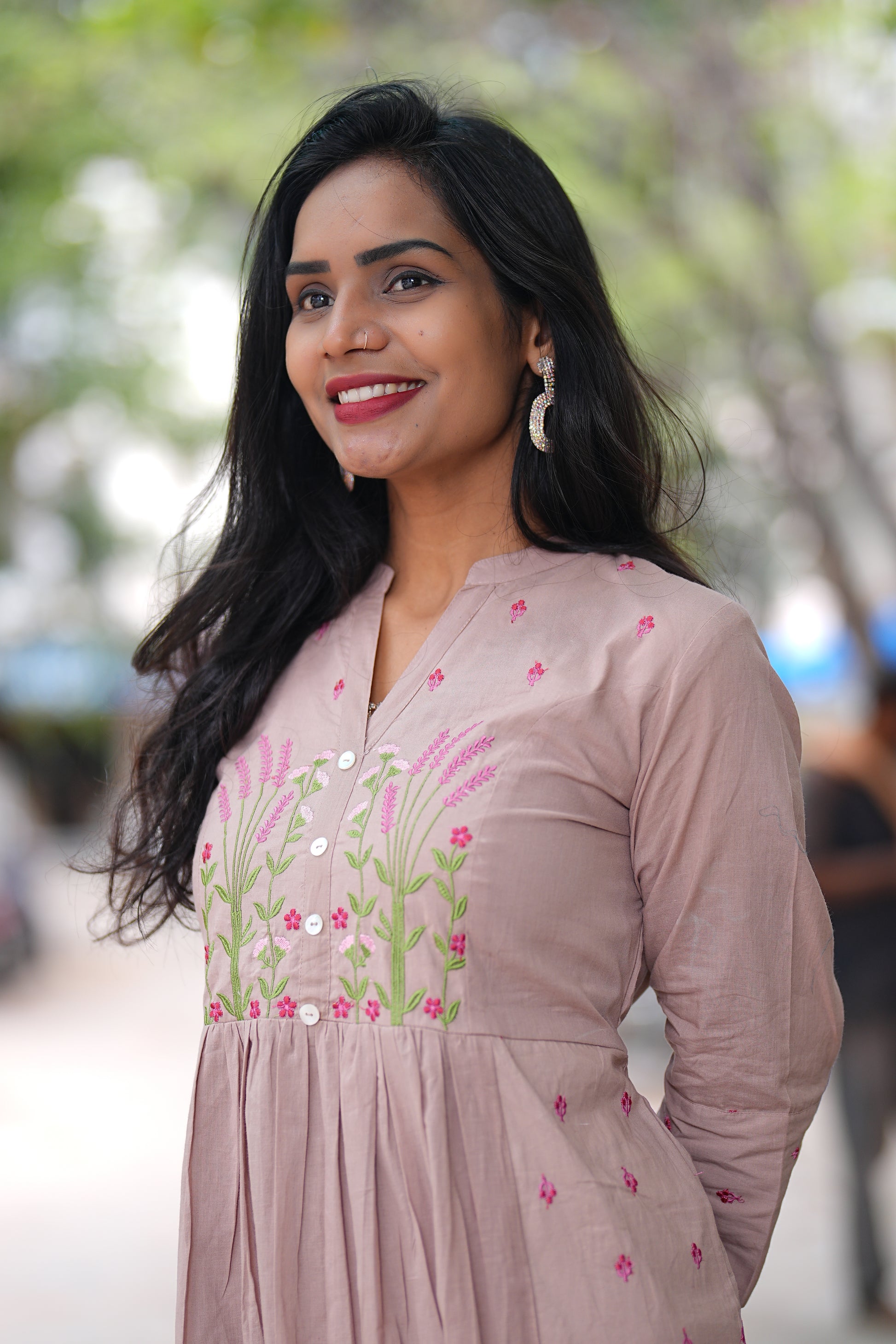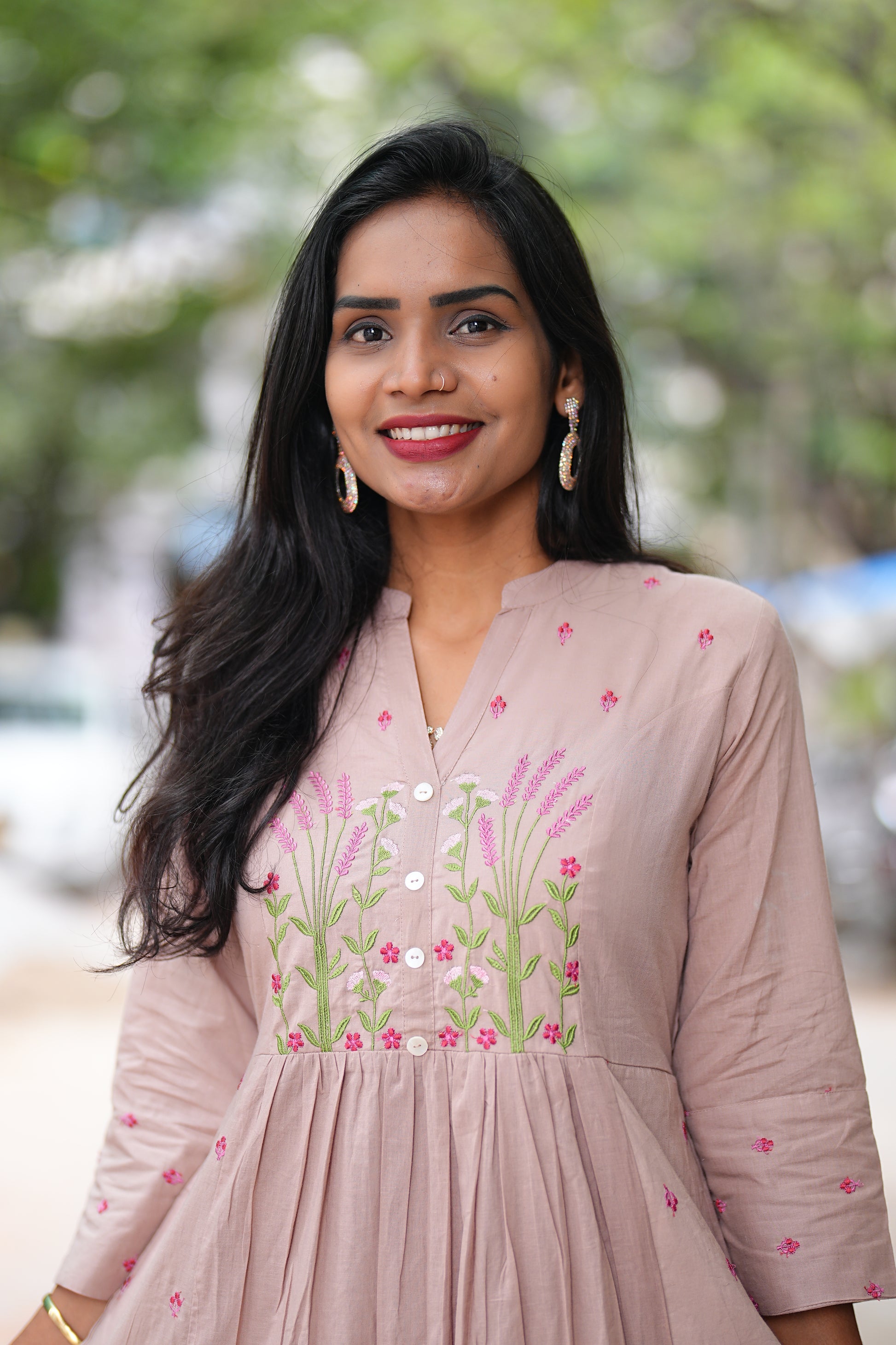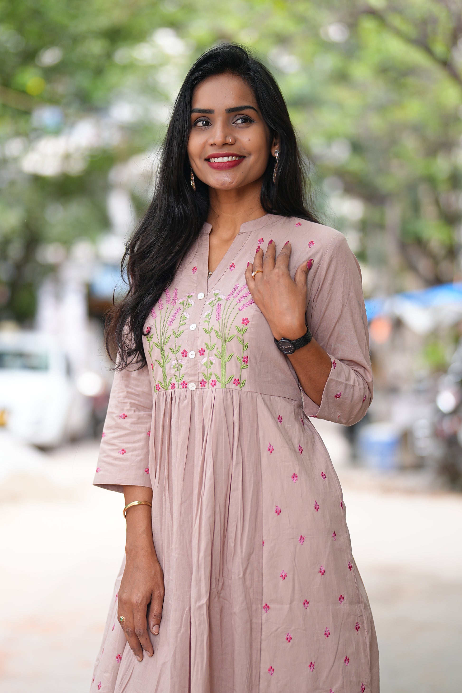 This cordset features exquisite light brown thread embroidery on pure mul cotton fabric, offering a refined and comfortable wear experience. Crafted with complete lining, it ensures a structured fit and enhances durability. Ideal for those seeking elegance paired with premium natural fabric, this piece combines traditional craftsmanship with lasting quality.