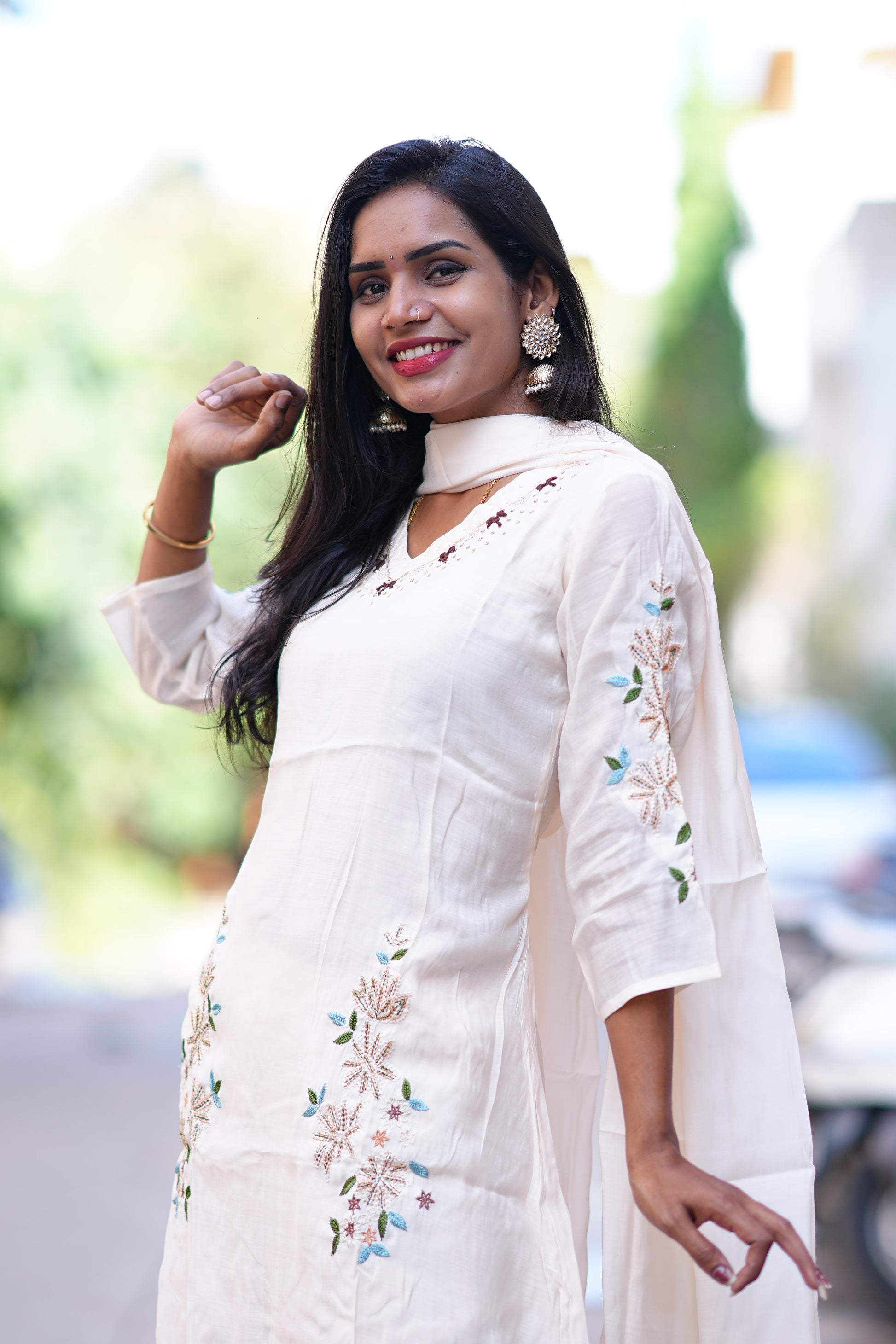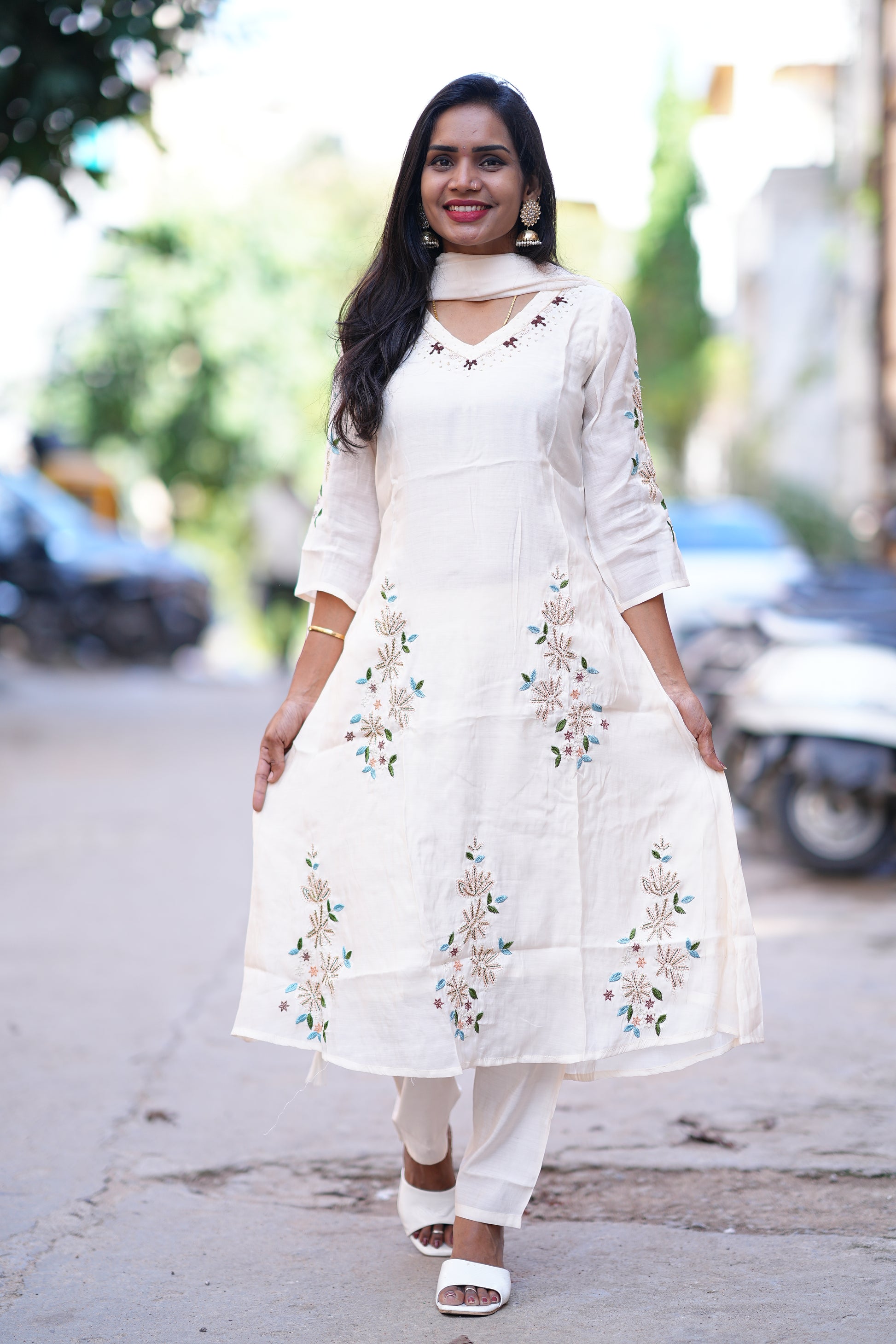 The Mul Chandheri Designer 3 Piece Set offers a sophisticated blend of traditional craftsmanship and contemporary style. This ensemble includes a meticulously designed top, coordinating bottom, and a matching dupatta, all crafted with premium fabrics to ensure comfort and durability. Ideal for festive occasions or formal gatherings, it promises an elegant fit and timeless appeal, making it a valuable addition to your ethnic wardrobe.
