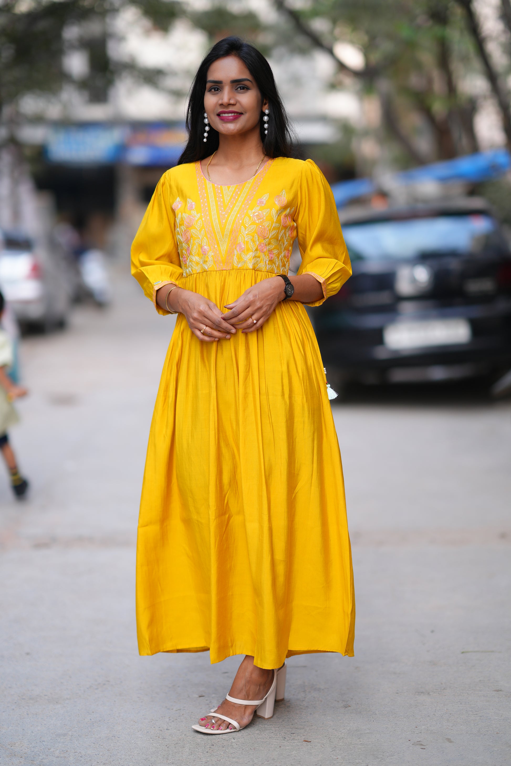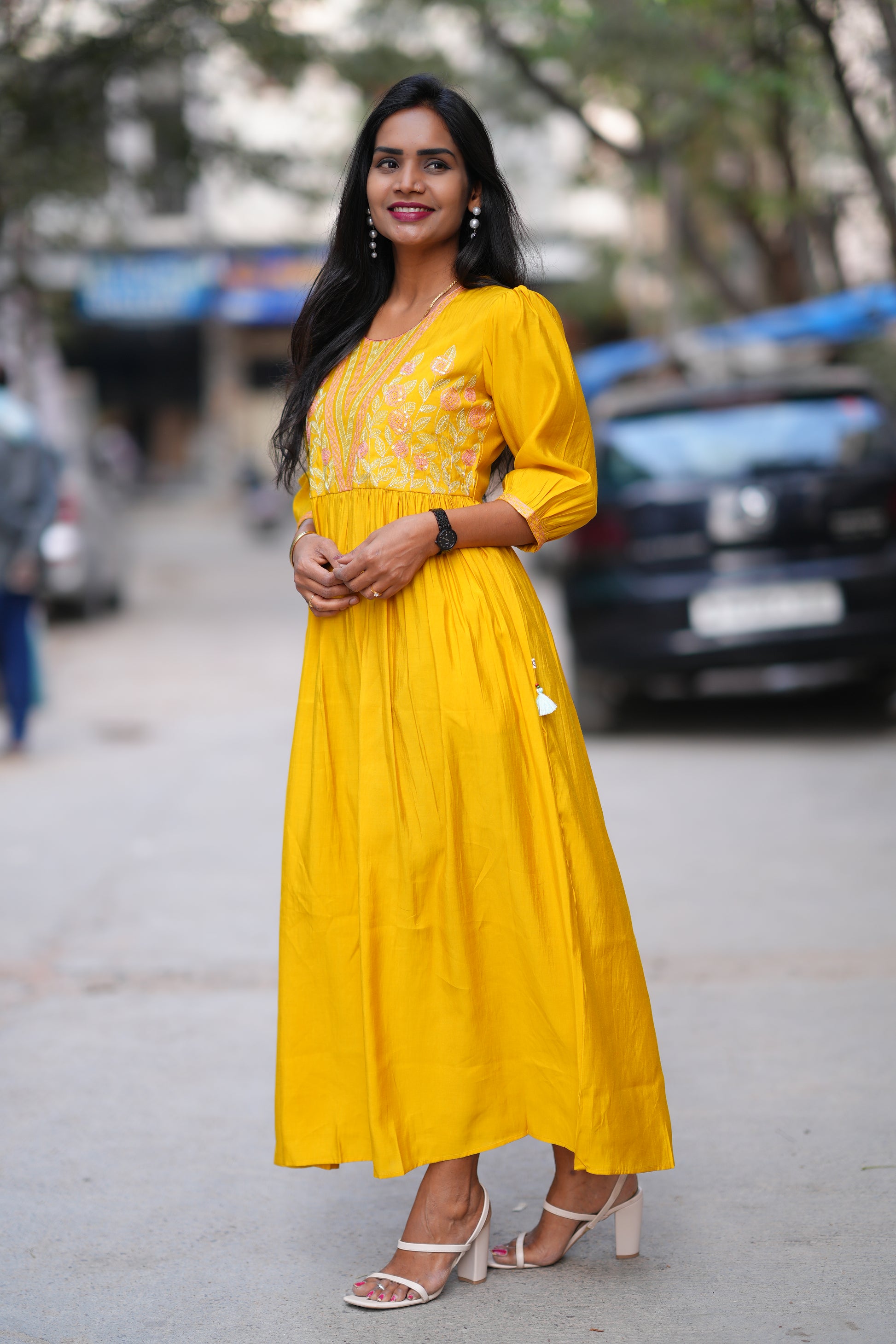 Elevate your ethnic wardrobe with this striking mustard yellow designer long frock, a versatile piece that seamlessly transitions from festive occasions to everyday elegance. Crafted with meticulous attention to detail, this frock features sophisticated design elements that reflect contemporary fashion sensibilities while honoring traditional aesthetics. The rich mustard hue complements a wide range of skin tones and pairs effortlessly with statement jewelry and accessories. Perfect for weddings, celebrations, or making a confident style statement, this designer piece offers both comfort and timeless appeal for the modern Indian woman.