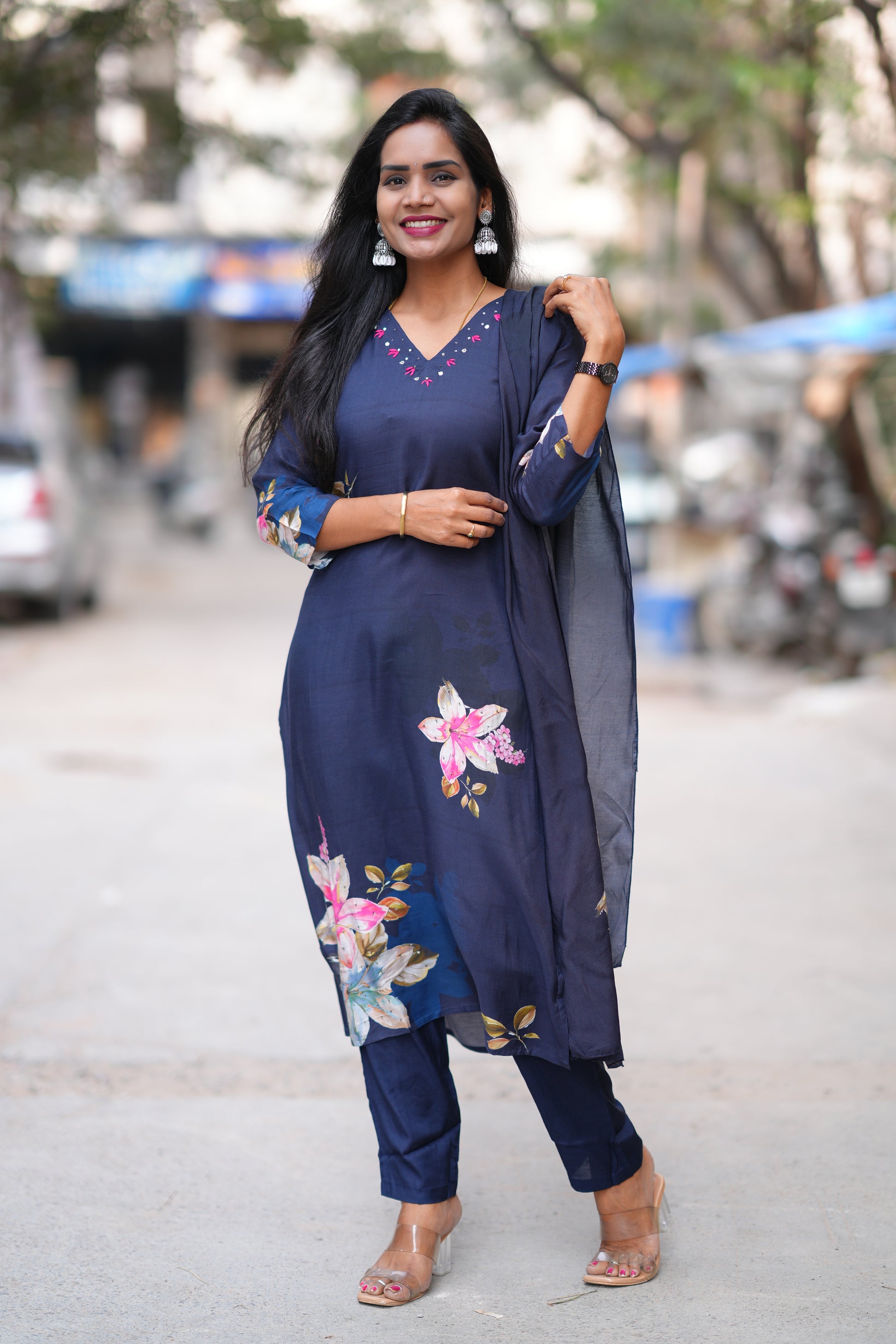 Navy Blue Color Pure Muslin 3 Piece Set With Complete Lining Elevate your wardrobe with this sophisticated navy blue muslin ensemble. Crafted from pure muslin fabric, this three-piece set delivers exceptional comfort and breathability, making it ideal for warm climates and everyday wear. The complete lining ensures durability and a refined finish, while the versatile navy shade pairs effortlessly with any accessory collection. Perfect for casual outings, work settings, or relaxed gatherings, this set combines timeless elegance with practical construction. Experience the quality and versatility that pure muslin offers.