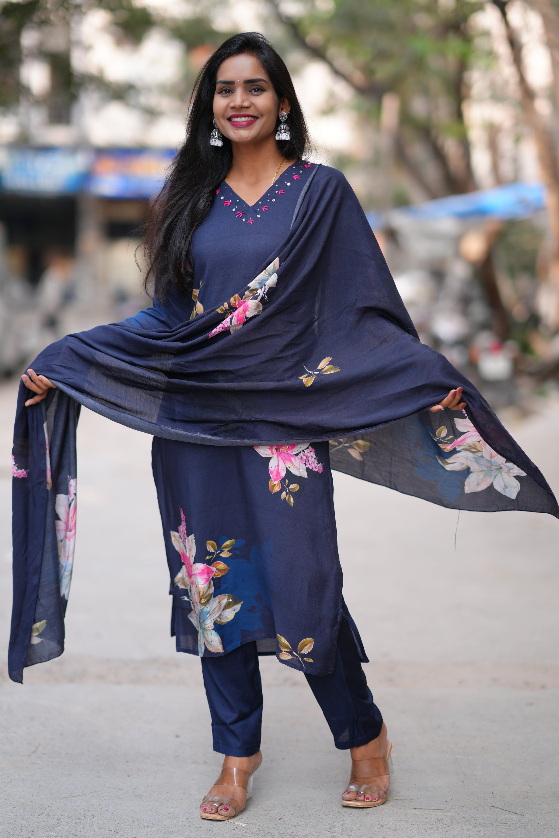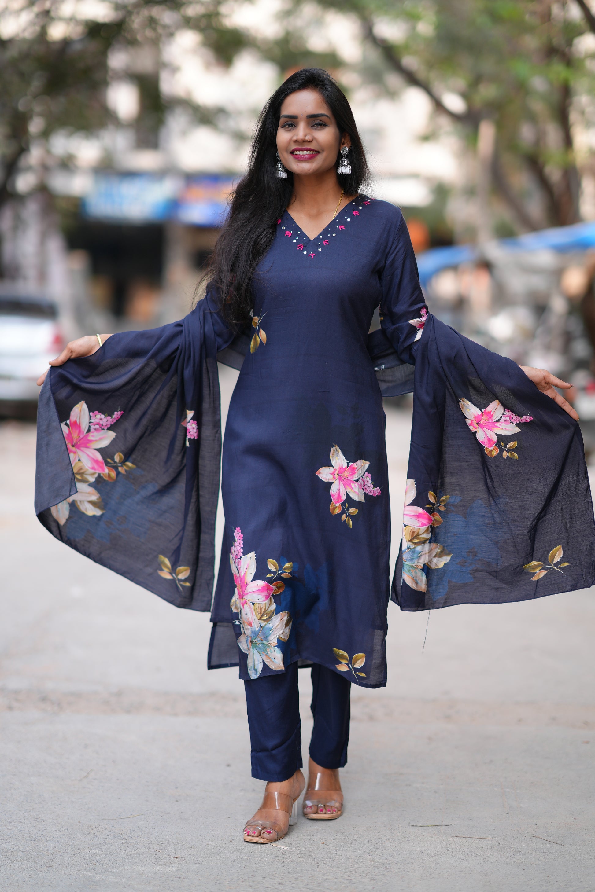 Navy Blue Color Pure Muslin 3 Piece Set With Complete Lining