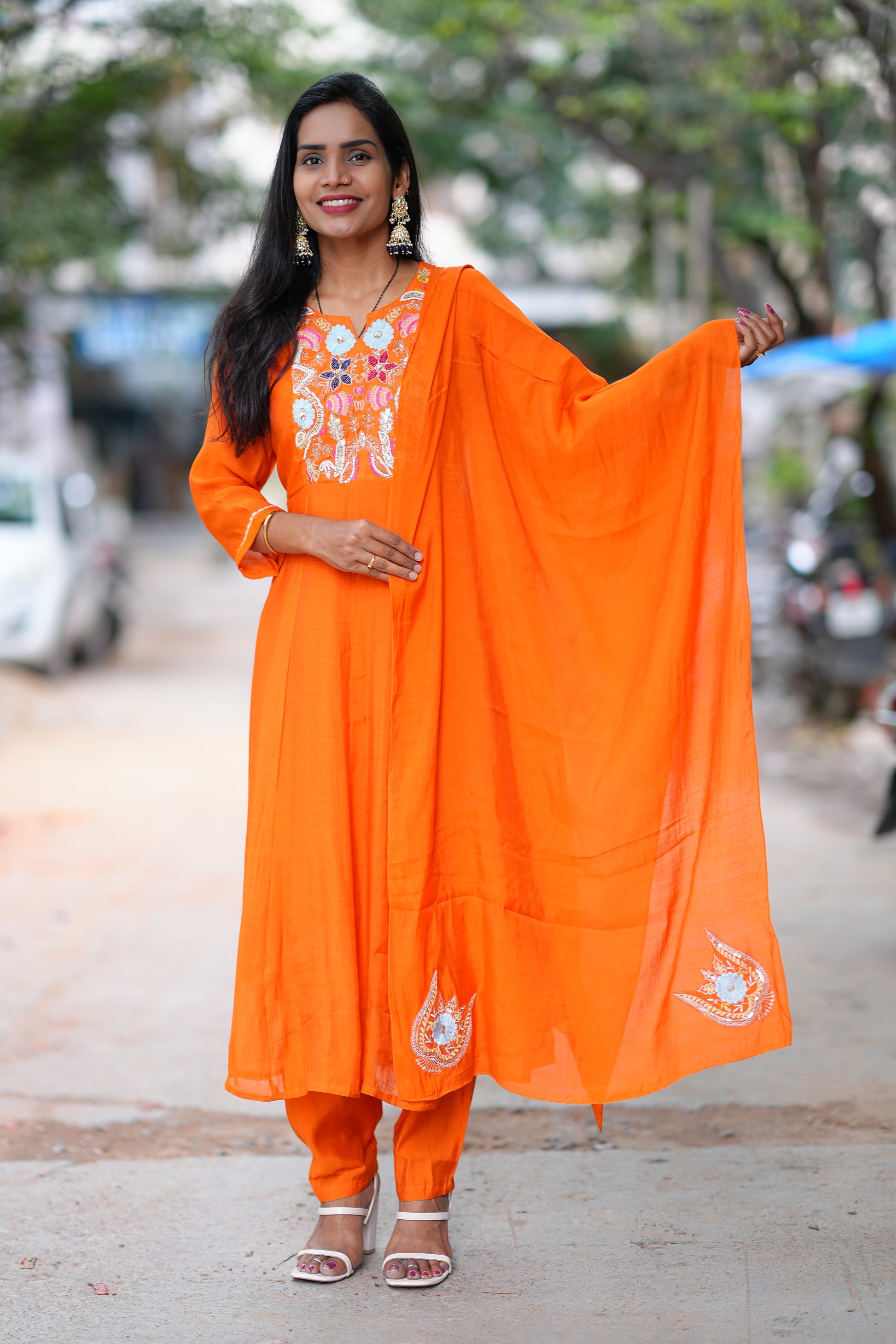 Elevate your ethnic wardrobe with this exquisite Orange Mul Chanderi 3-piece set, a timeless choice for discerning wearers. Crafted from premium Mul Chanderi fabric, known for its lightweight breathability and subtle sheen, this ensemble combines traditional elegance with contemporary comfort. The set includes three coordinated pieces, each thoughtfully lined for enhanced durability and refined draping. The vibrant orange hue complements various skin tones while maintaining the sophistication Chanderi is celebrated for. Perfect for festive occasions, family gatherings, or everyday ethnic wear, this versatile set offers the perfect balance of tradition and practicality. Experience the luxury of authentic handloom craftsmanship with modern finishing touches.