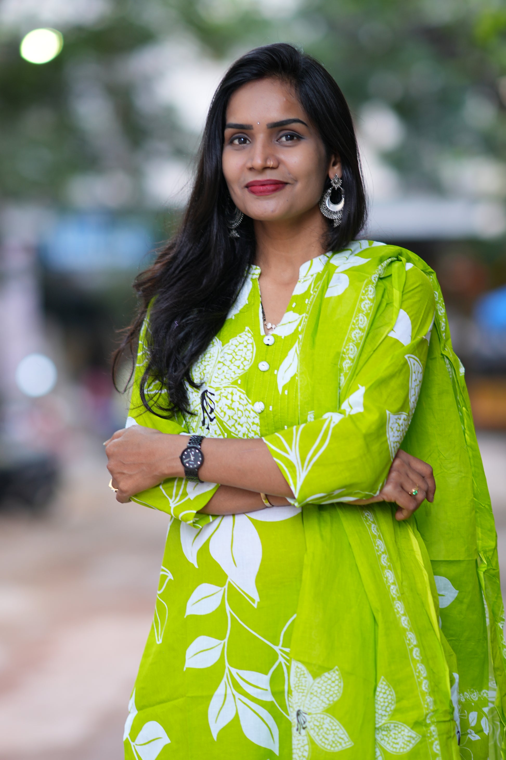 Experience the elegance of Jaipur craftsmanship with this Parrot Green cotton 3-piece set. Made from breathable Jaipur cotton, it features intricate beadwork that adds refined detail without compromising comfort. Fully lined for a polished fit, this set combines traditional artistry with functional design, making it ideal for both casual and formal wear. Its vibrant parrot green hue ensures a striking presence while maintaining versatility in styling.