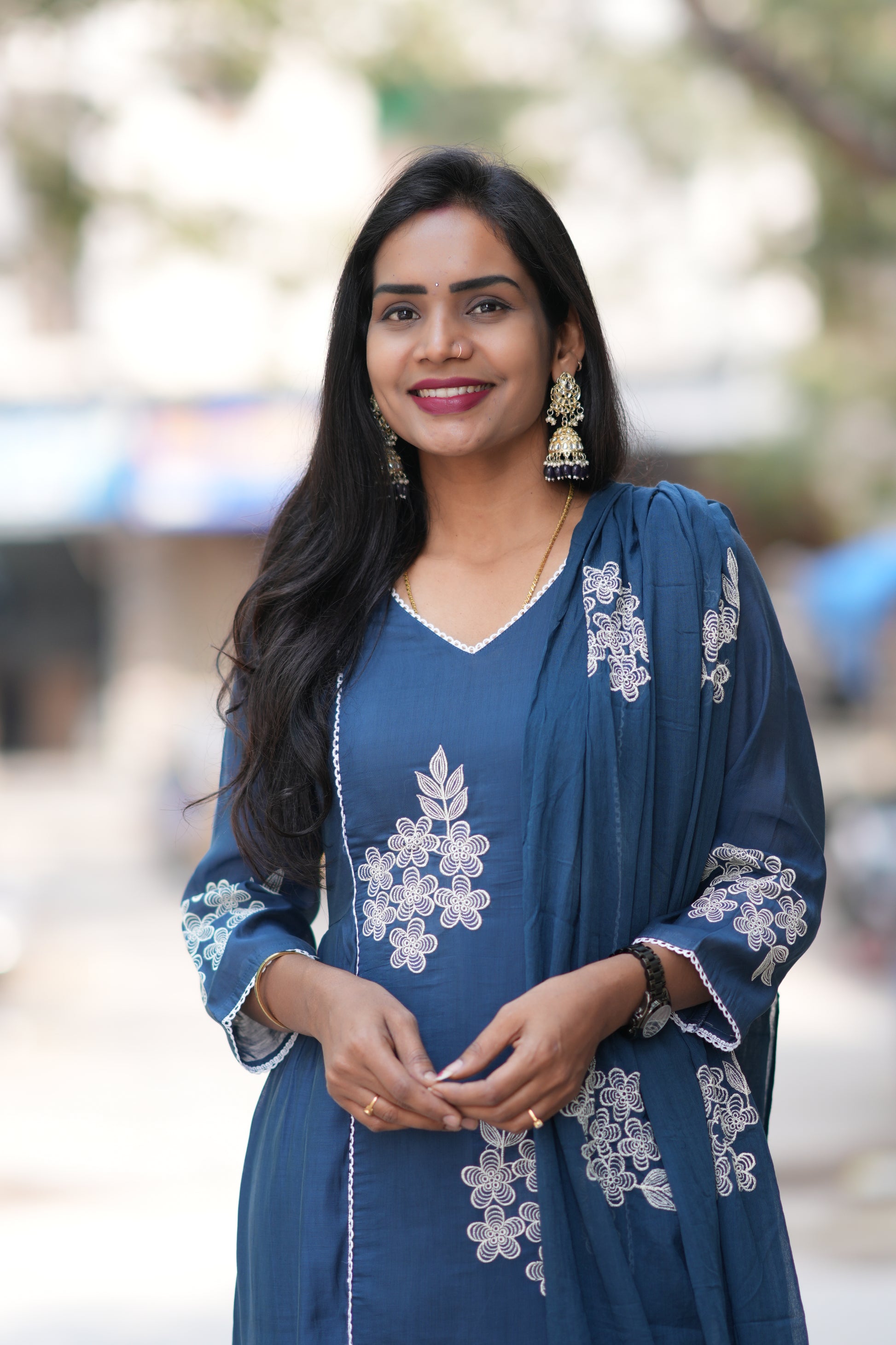 Petrol Blue Color Mul Chanderi Designer 3 Piece Set