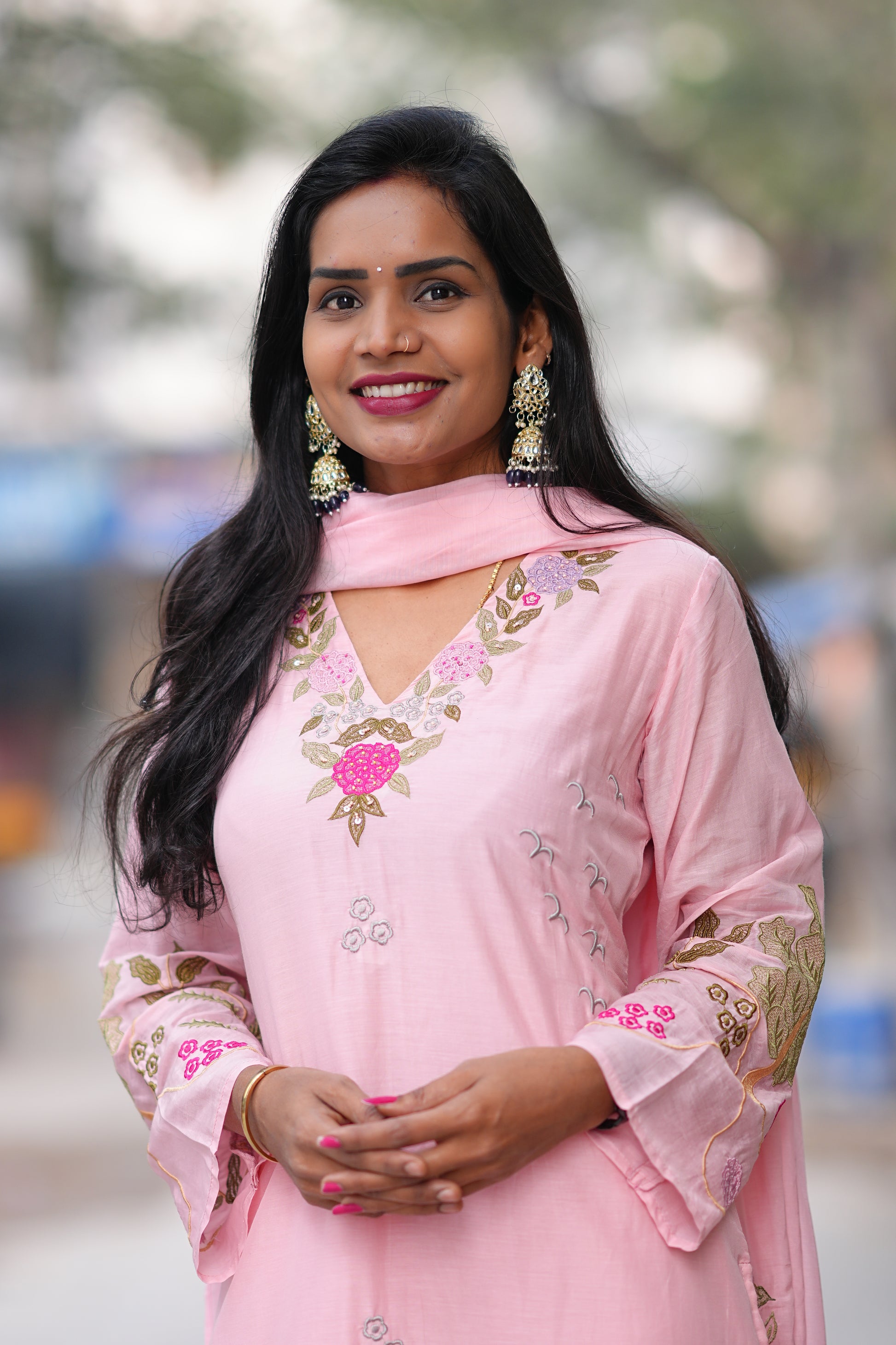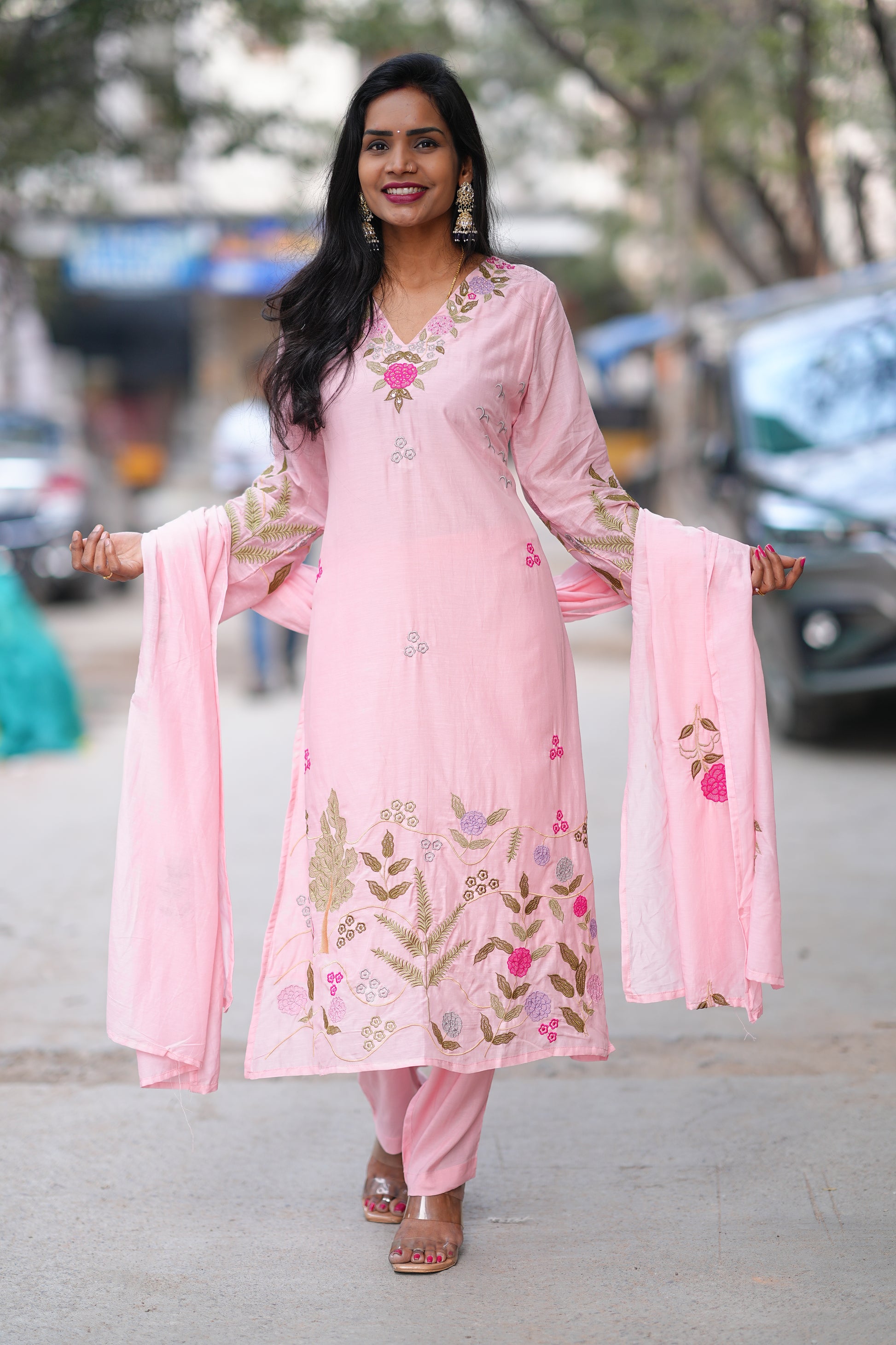 Elevate your ethnic wardrobe with this exquisite Pink Mul Chanderi Designer Wear 3 Piece Set. Crafted from premium mul chanderi fabric, known for its lightweight breathability and subtle sheen, this ensemble combines traditional elegance with contemporary design sensibilities. The set includes three coordinated pieces that work seamlessly together, offering versatility for festive occasions, celebrations, or refined everyday wear. Mul chanderi's natural drape and comfort make it ideal for India's warm climate, while the sophisticated pink hue complements a range of skin tones. Perfect for those who appreciate authentic craftsmanship and timeless style.