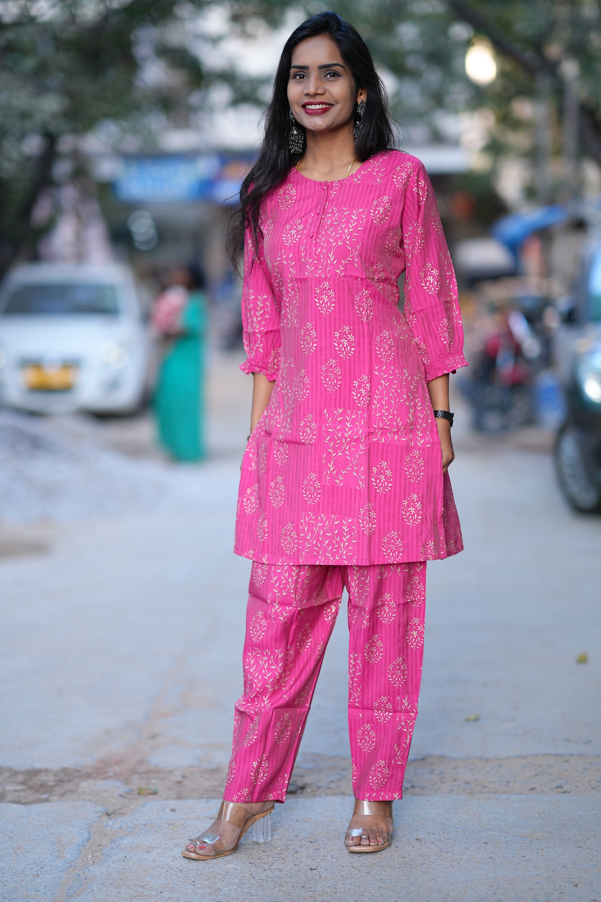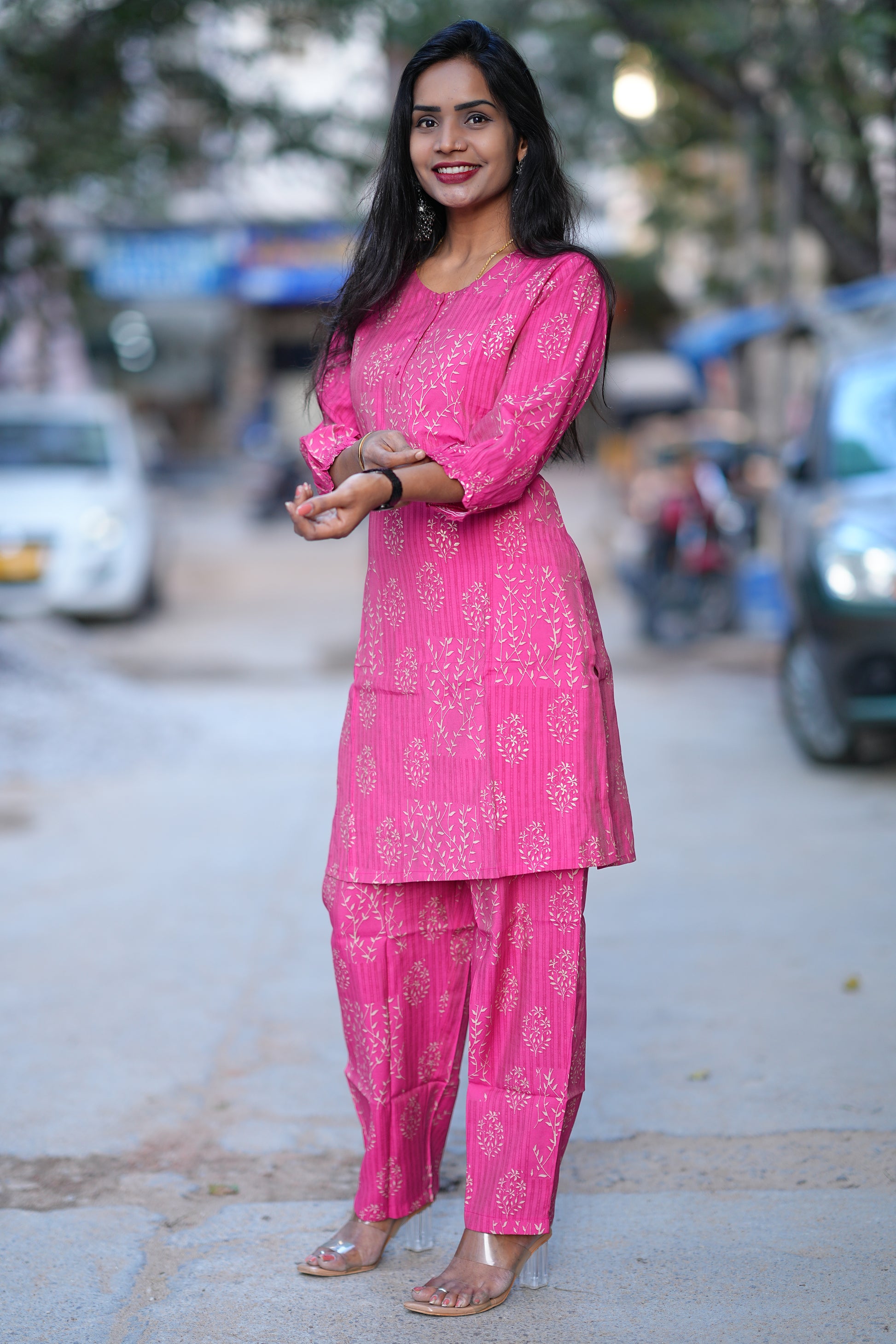Pink Color Office Wear Cordset Elevate your professional wardrobe with this sophisticated pink cordset, designed for the modern office environment. The coordinated top and bottom pairing offers effortless styling, allowing you to transition seamlessly from meetings to presentations. Crafted with attention to detail, this ensemble combines comfort with polished aesthetics, making it an essential addition for professionals who value both appearance and practicality. The soft pink hue brings a contemporary edge to traditional office wear while maintaining the formality your workplace demands. Perfect for building a versatile professional capsule wardrobe.