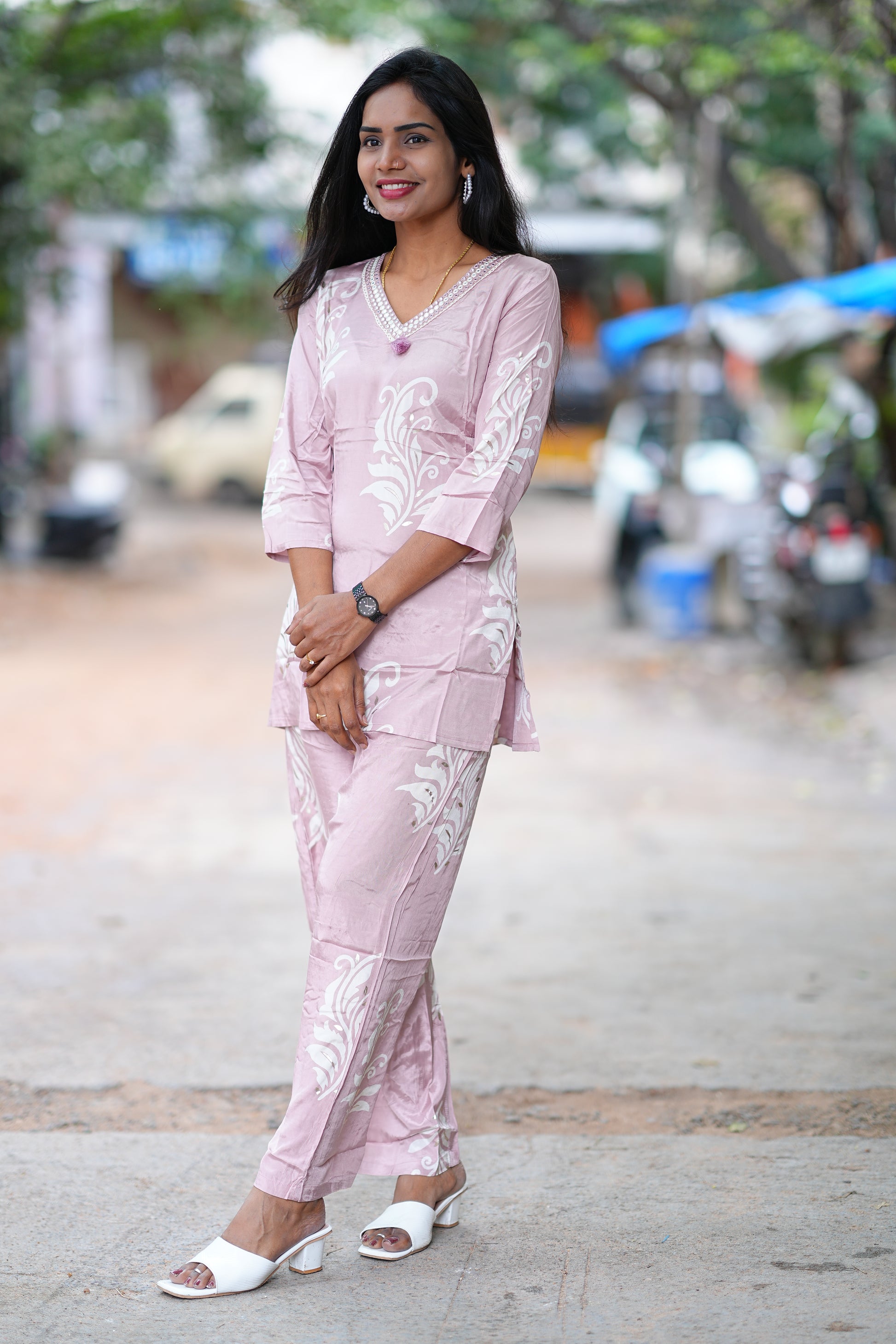 Dusty Pink Color Pure Muslin Designer Wear Cordset