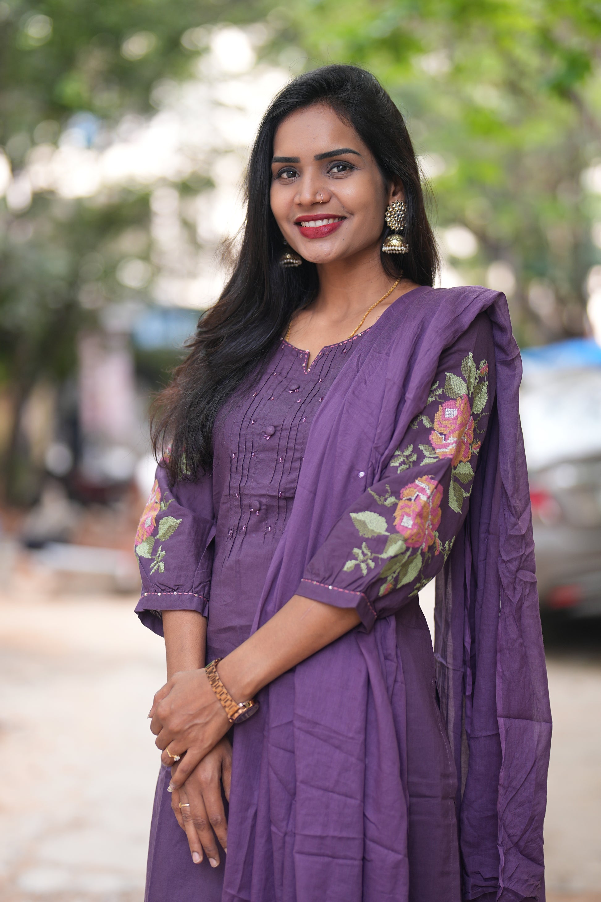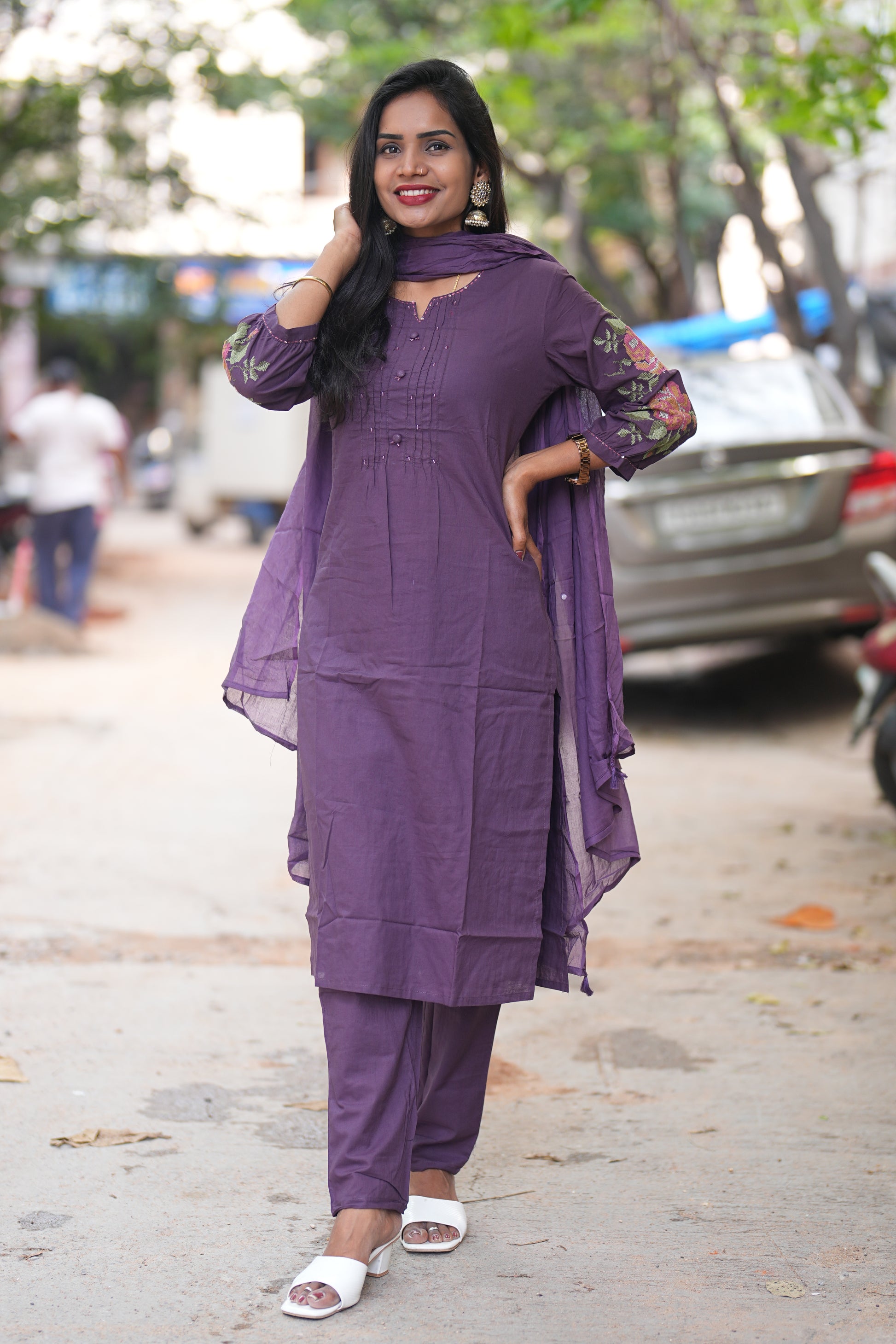 Purple Color Jaipuri Cotton Designer Wear 3 Piece Set