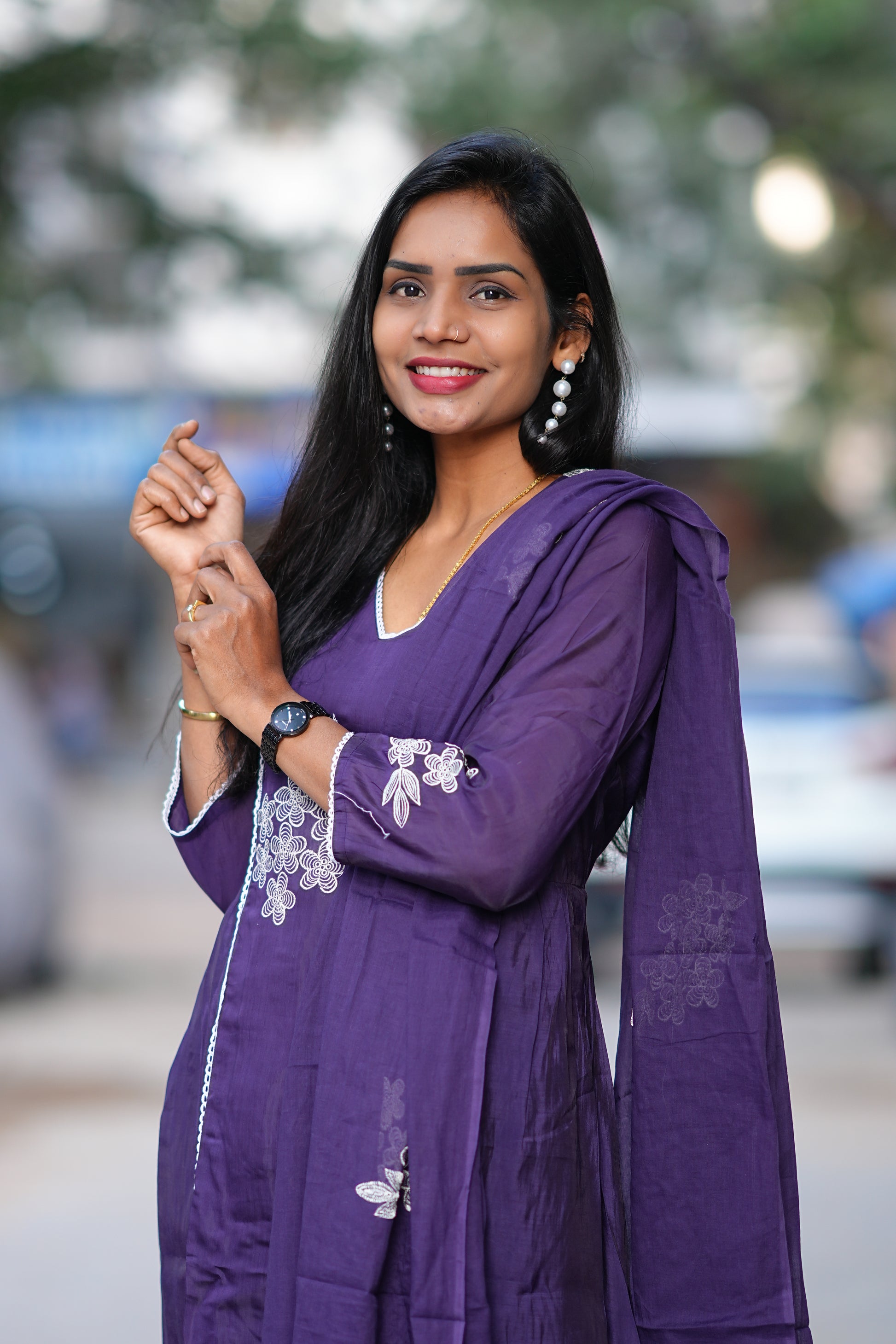 Elevate your festive wardrobe with this exquisite purple Mul Chanderi ensemble. Crafted from premium Mul Chanderi fabric—renowned for its lightweight breathability and subtle sheen—this three-piece set combines traditional elegance with contemporary design. Intricate embroidery adorns each piece, while full lining ensures comfort and durability through extended wear. Perfect for weddings, celebrations, and special occasions, this set delivers the refined sophistication that discerning customers expect from premium cotton wear.