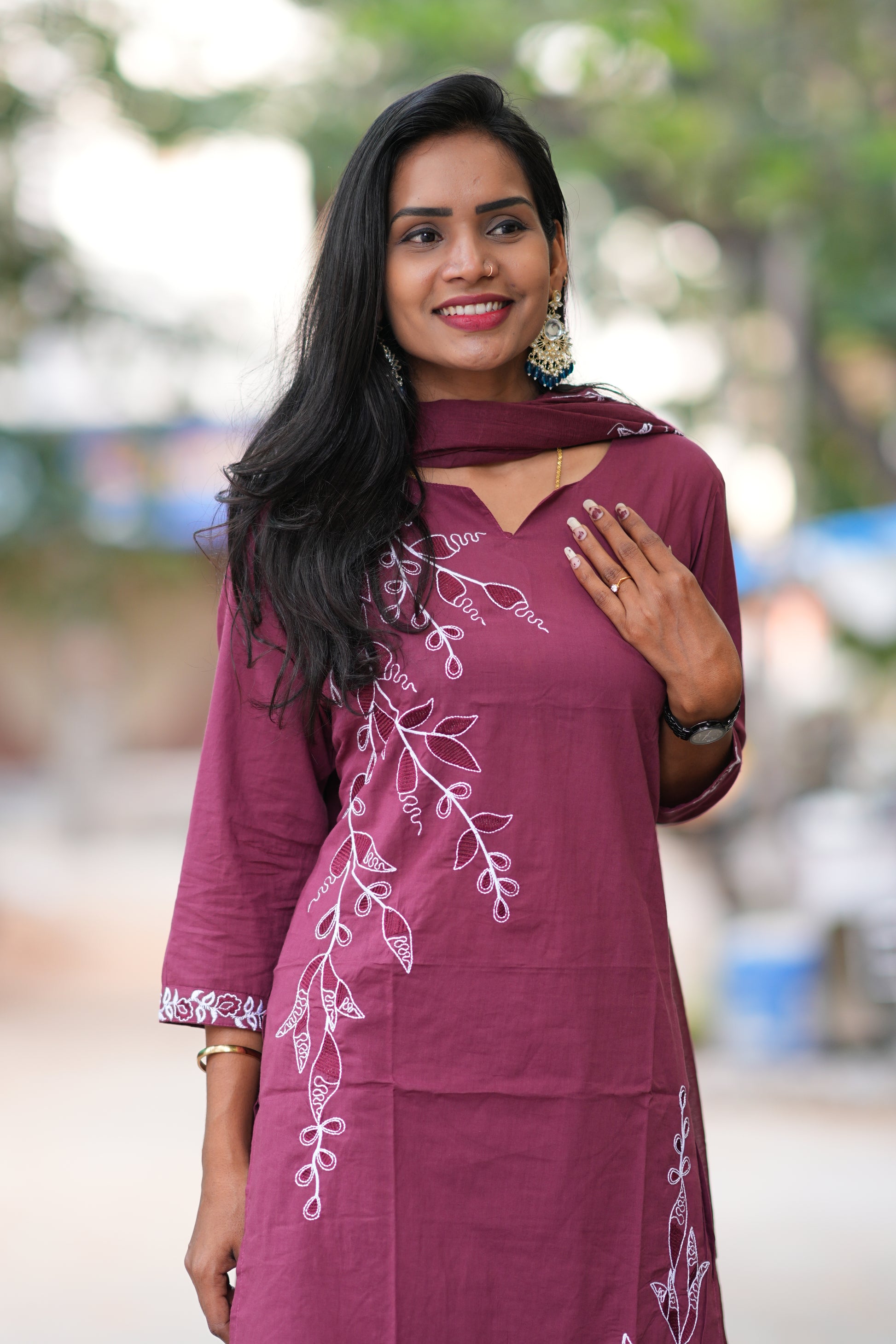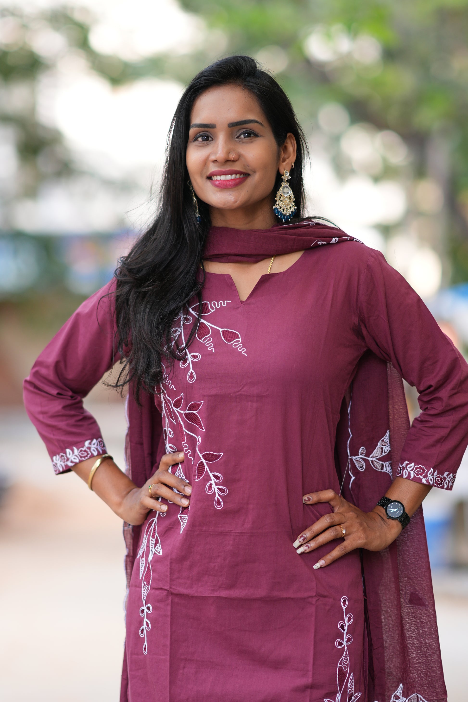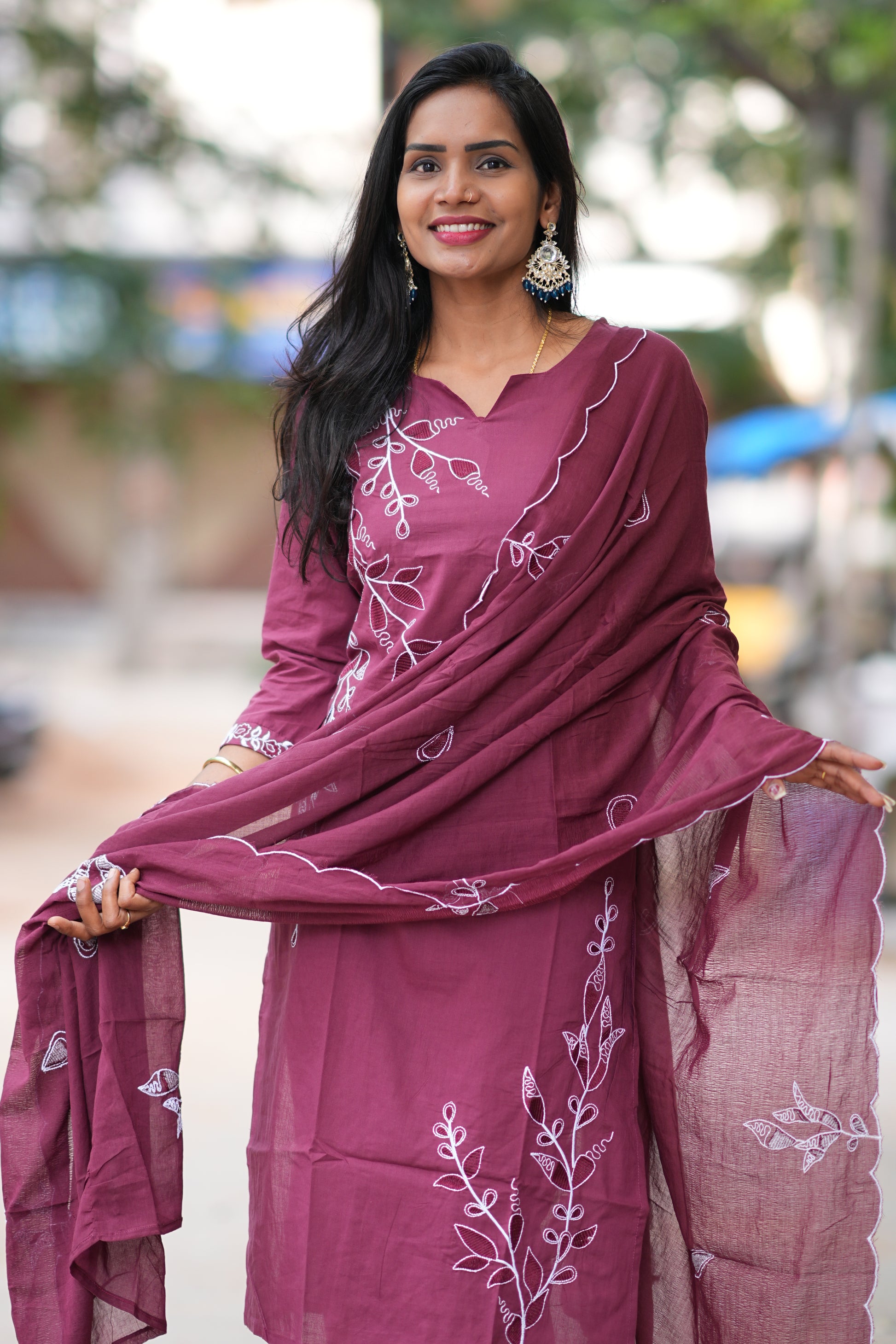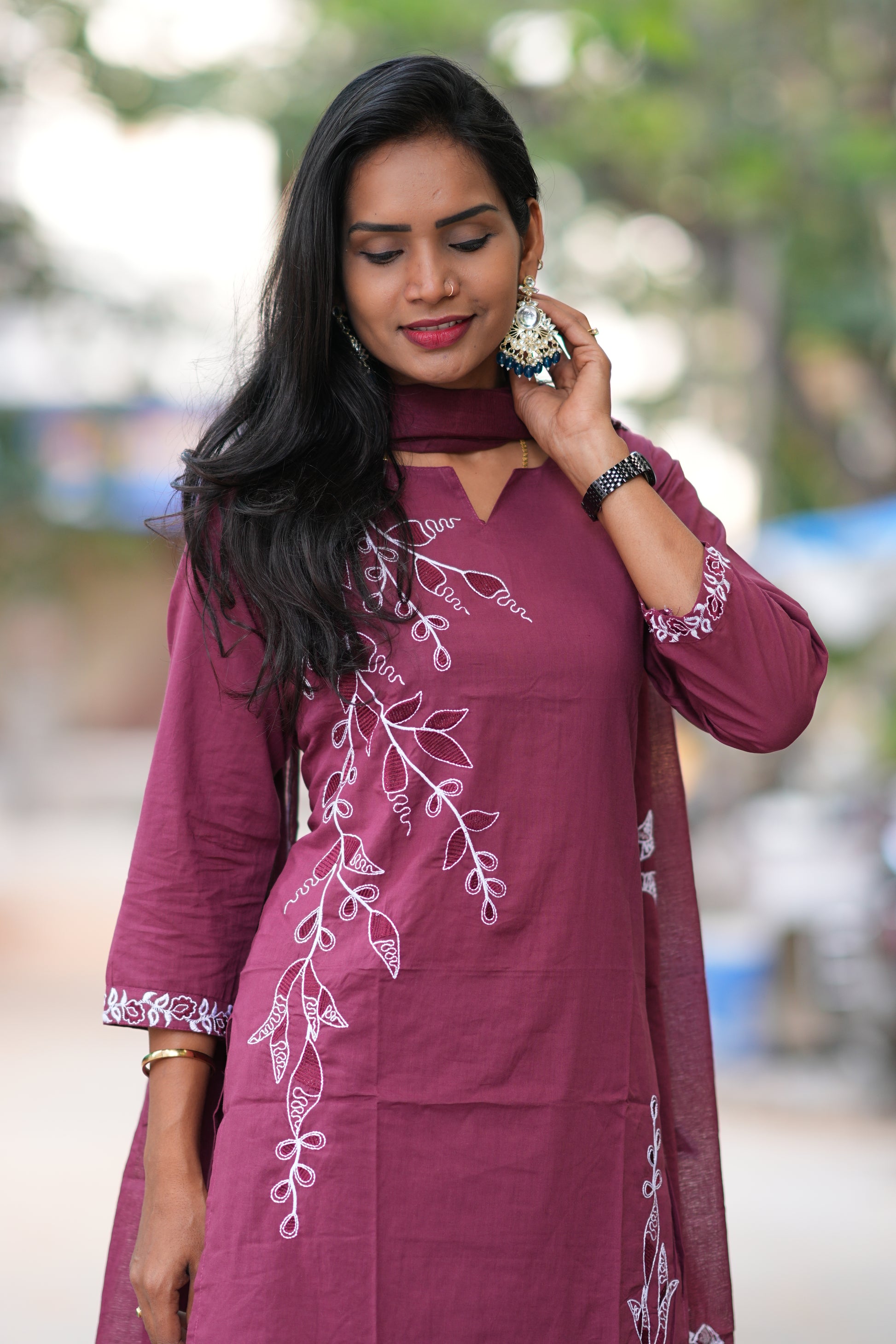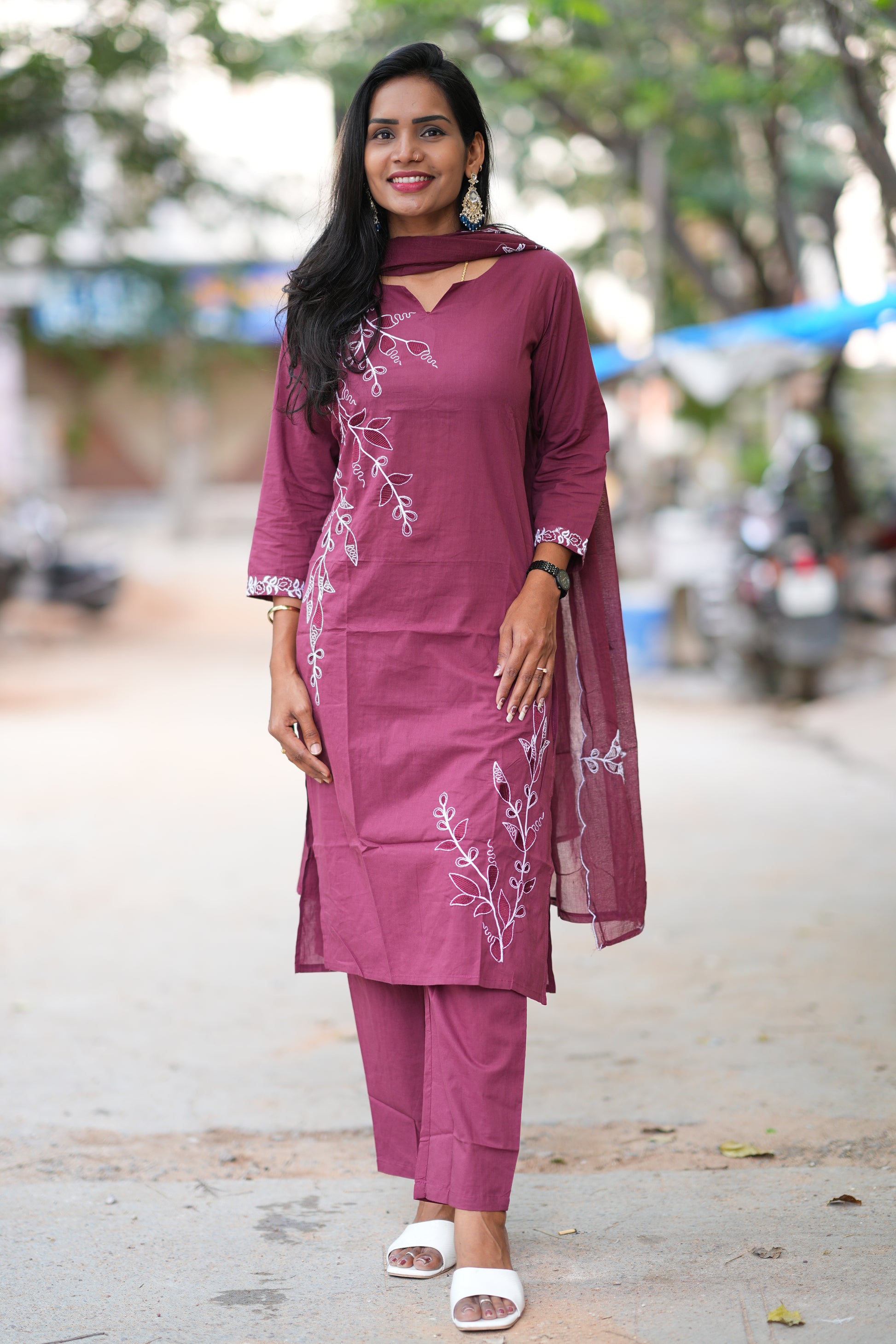 Rose Gold Color Jaipur Cotton 3 Piece Set With Thread Embroidery Work