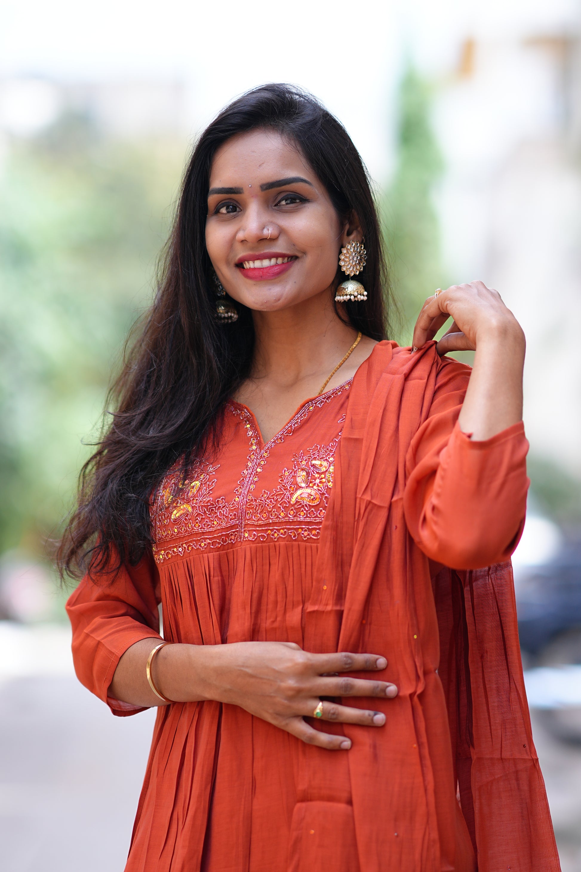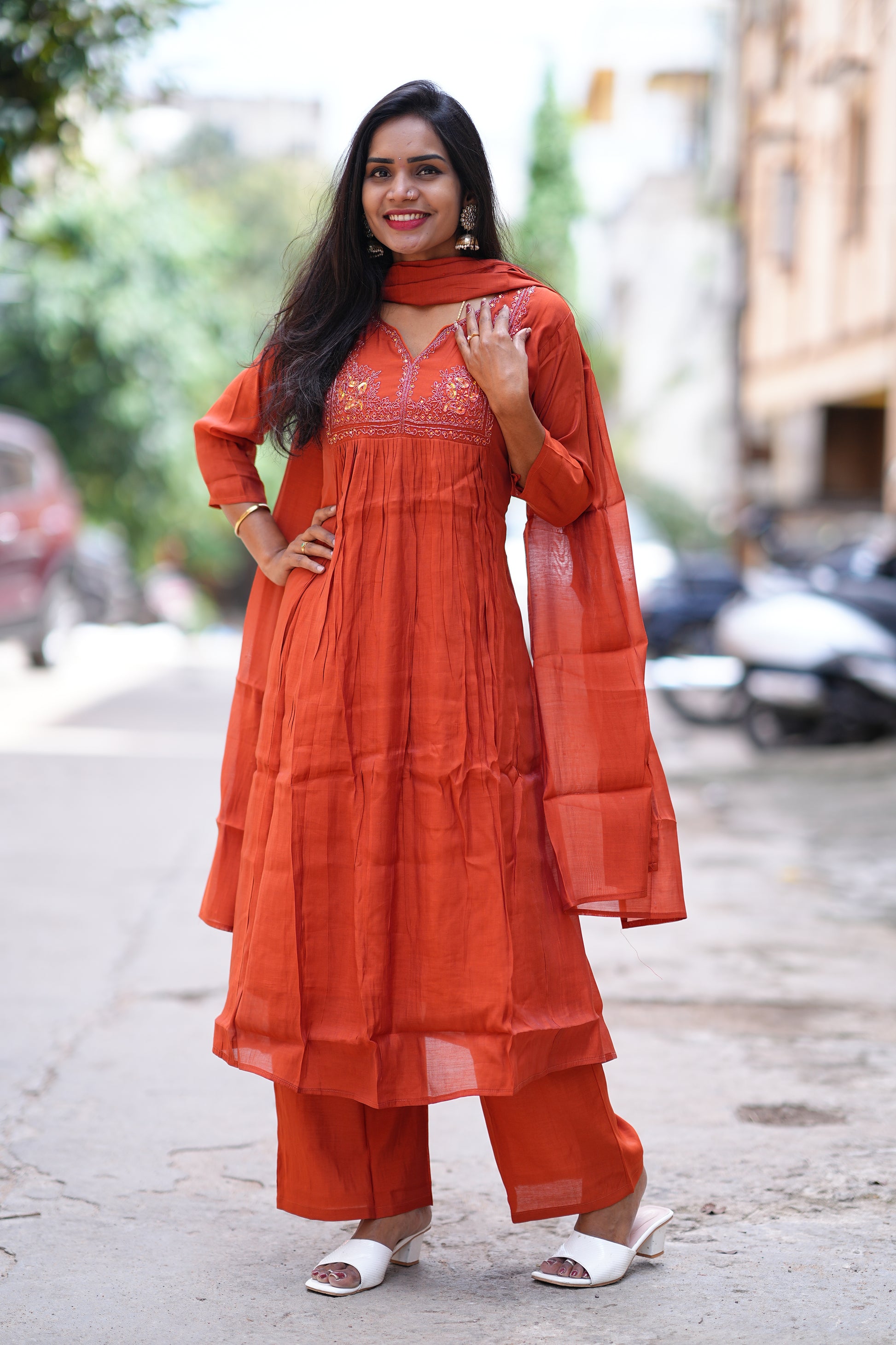 Elevate your festive wardrobe with this Rust Orange Premium Party Wear 3 Piece Set, expertly crafted for a polished and sophisticated look. This ensemble combines rich tones and premium materials to offer comfort and a striking appearance, perfect for special occasions. Its coordinated pieces ensure effortless styling, making it an ideal choice for those who appreciate refined fashion with a contemporary edge.